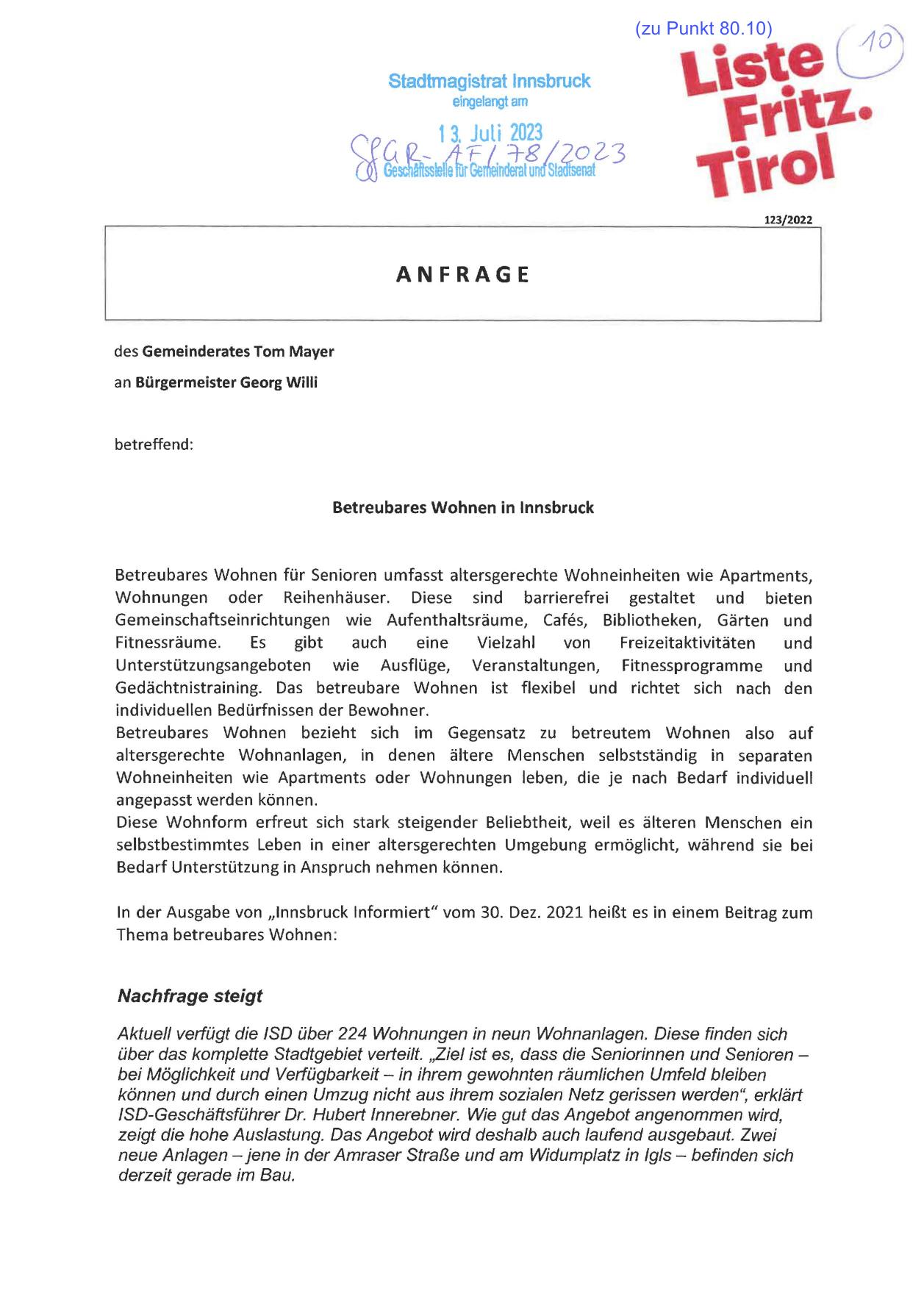 In der Ausgabe von „Innsbruck Informiert" vom 30. Dez. 2021 heißt es in einem Beitrag zum