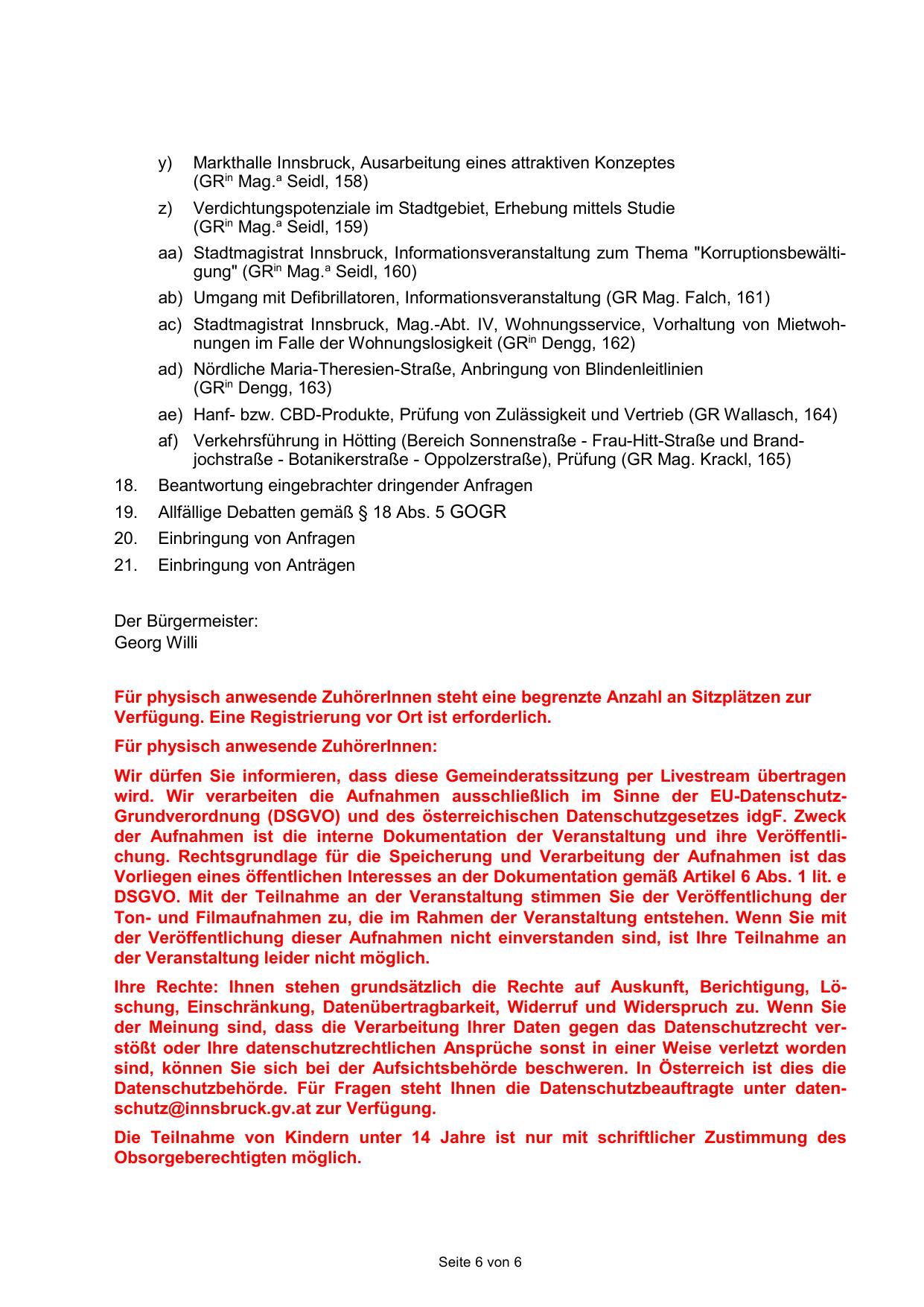 Wir dürfen Sie informieren, dass diese Gemeinderatssitzung per Livestream übertragen