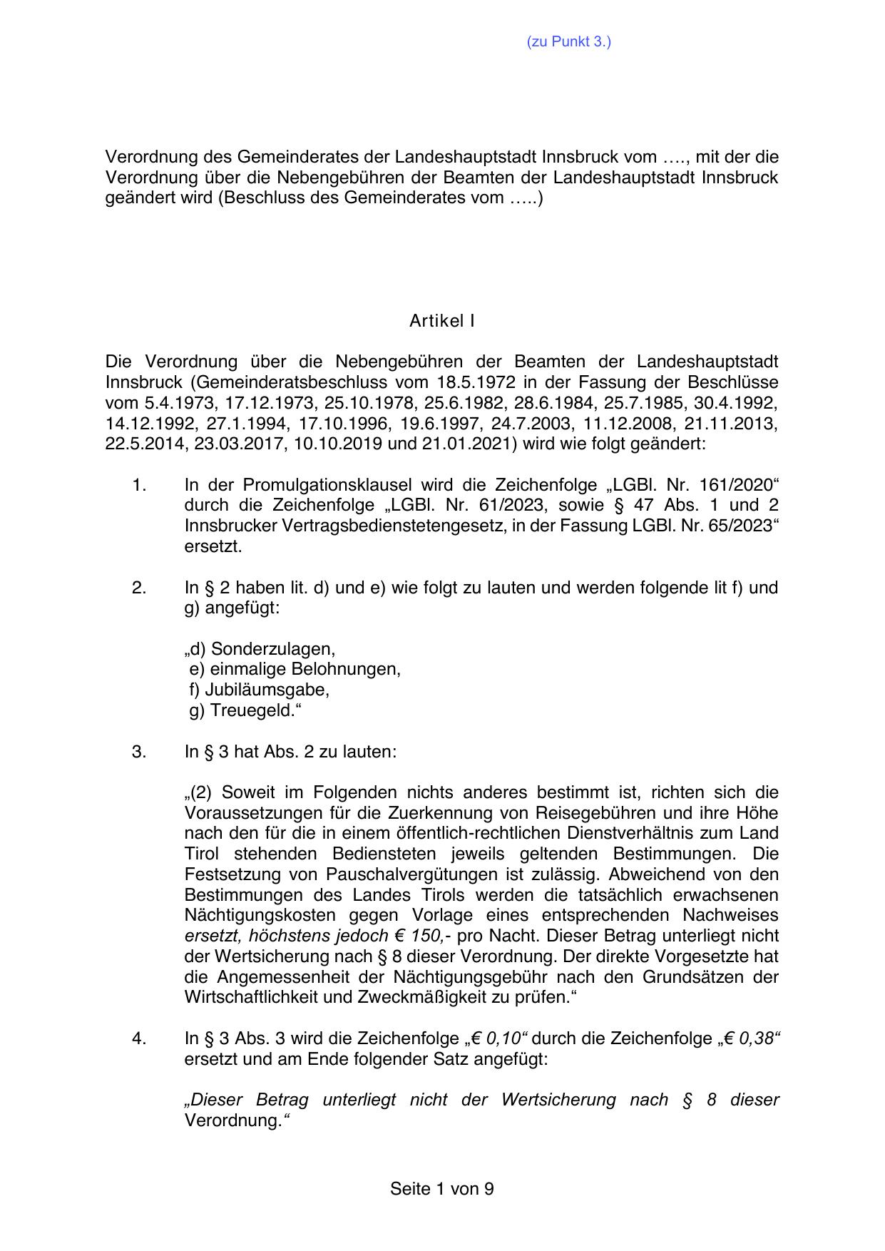 Verordnung über die Nebengebühren der Beamten der Landeshauptstadt Innsbruck