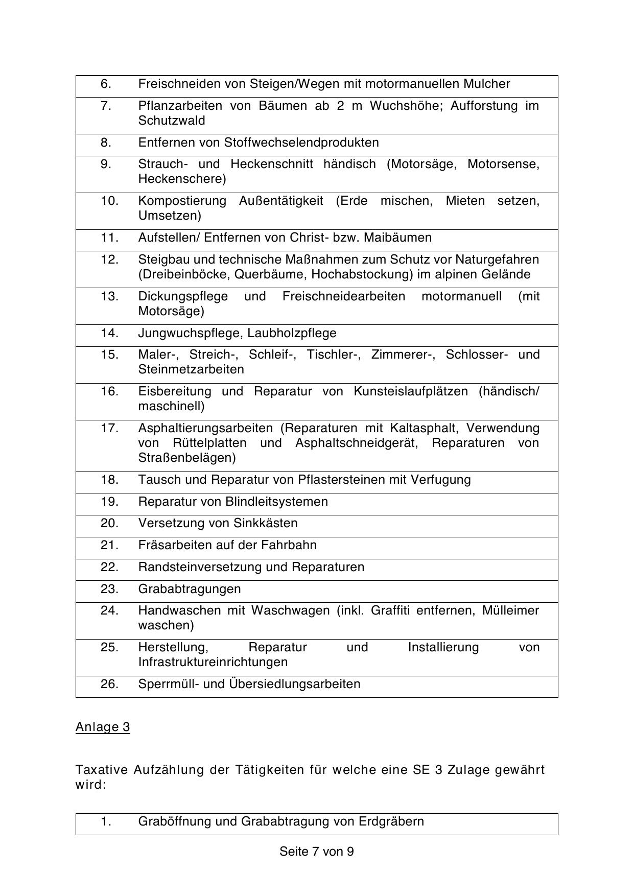 Taxative Aufzählung der Tätigkeiten für welche eine SE 3 Zulage gewährt