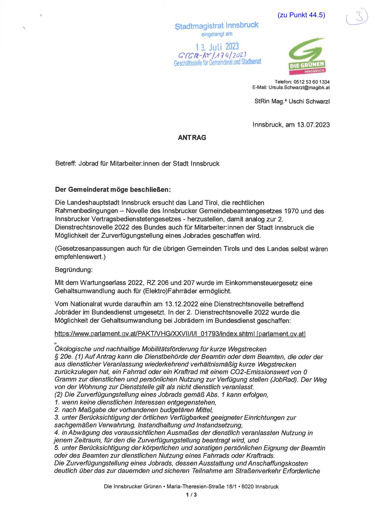 Betreff: Jobrad für Mitarbeiter: innen der Stadt Innsbruck