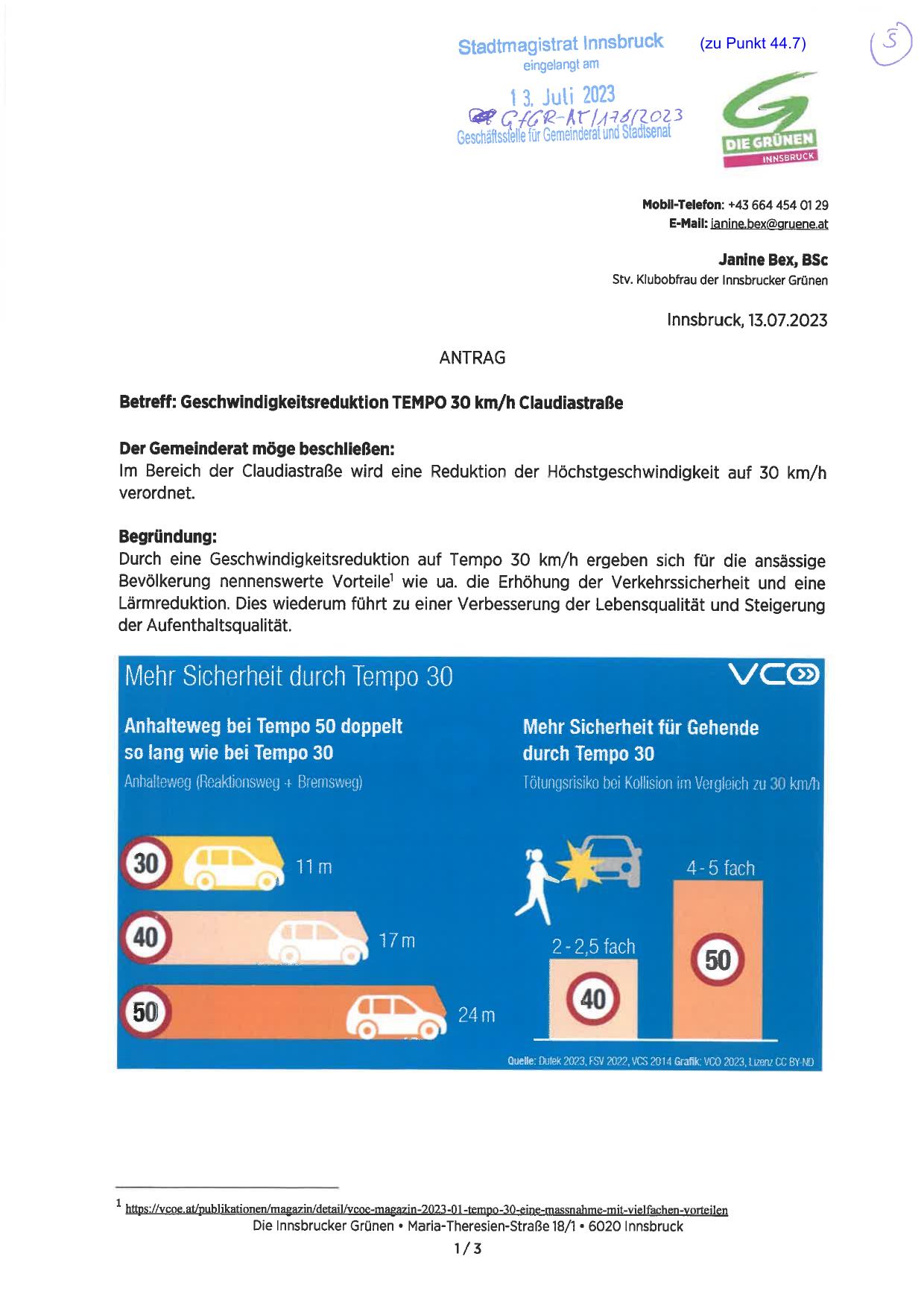 Betreff: Geschwindigkeitsreduktion TEMPO 30 km/h Claudiastraße