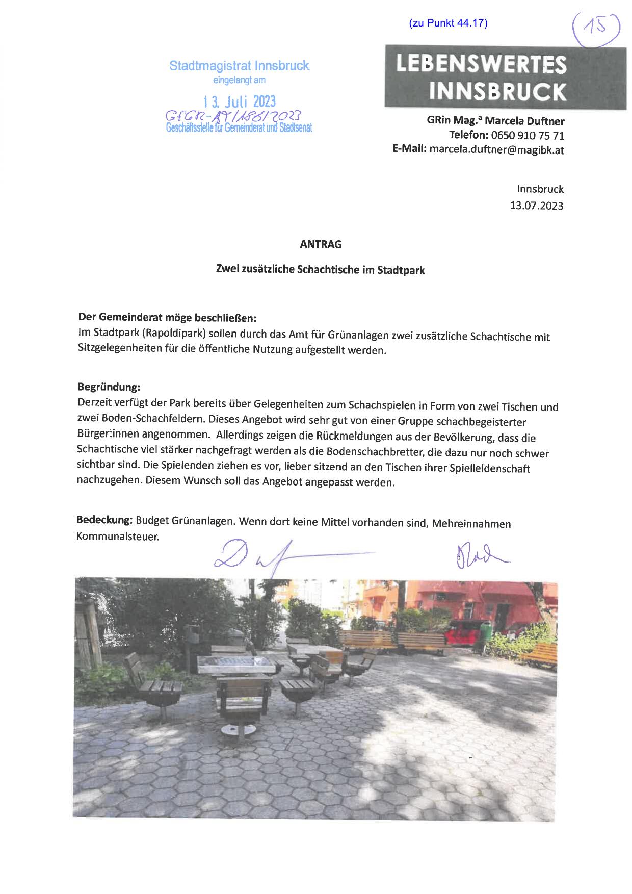 Derzeitverfügtder Parkbereits überGelegenheiten zum Schachspielen in Form von zweiTischen und