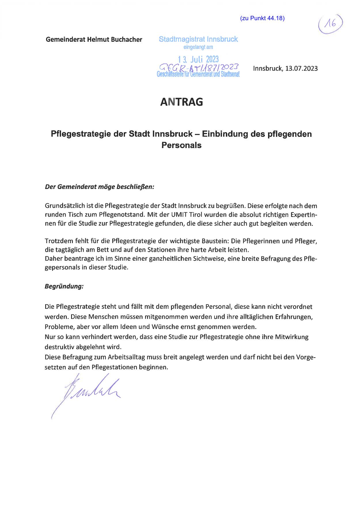 Grundsätzlich ist die Pflegestrategie der Stadt Innsbruck zu begrüßen. Diese erfolgte nach dem