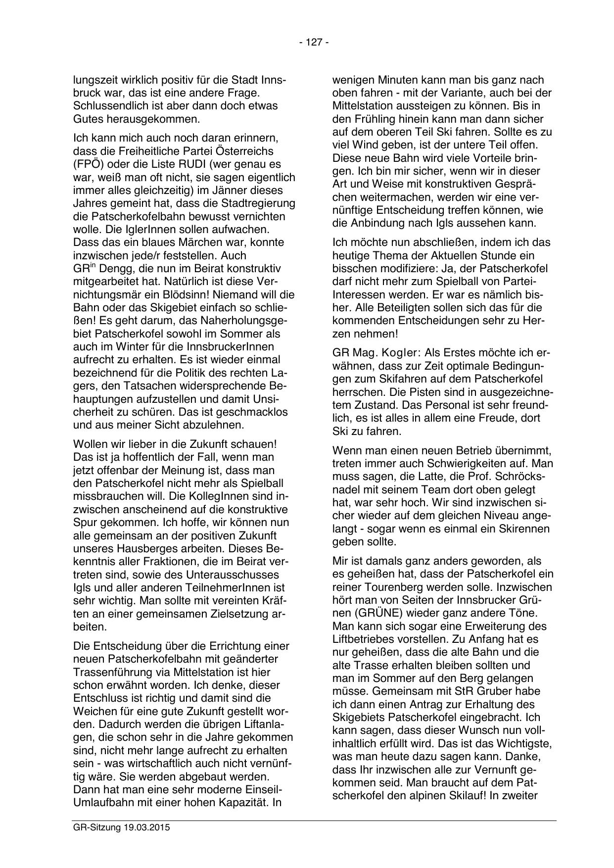 GR Mag. Kogler: Als Erstes möchte ich erwähnen, dass zur Zeit optimale Bedingungen zum Skifahren auf dem Patscherkofel