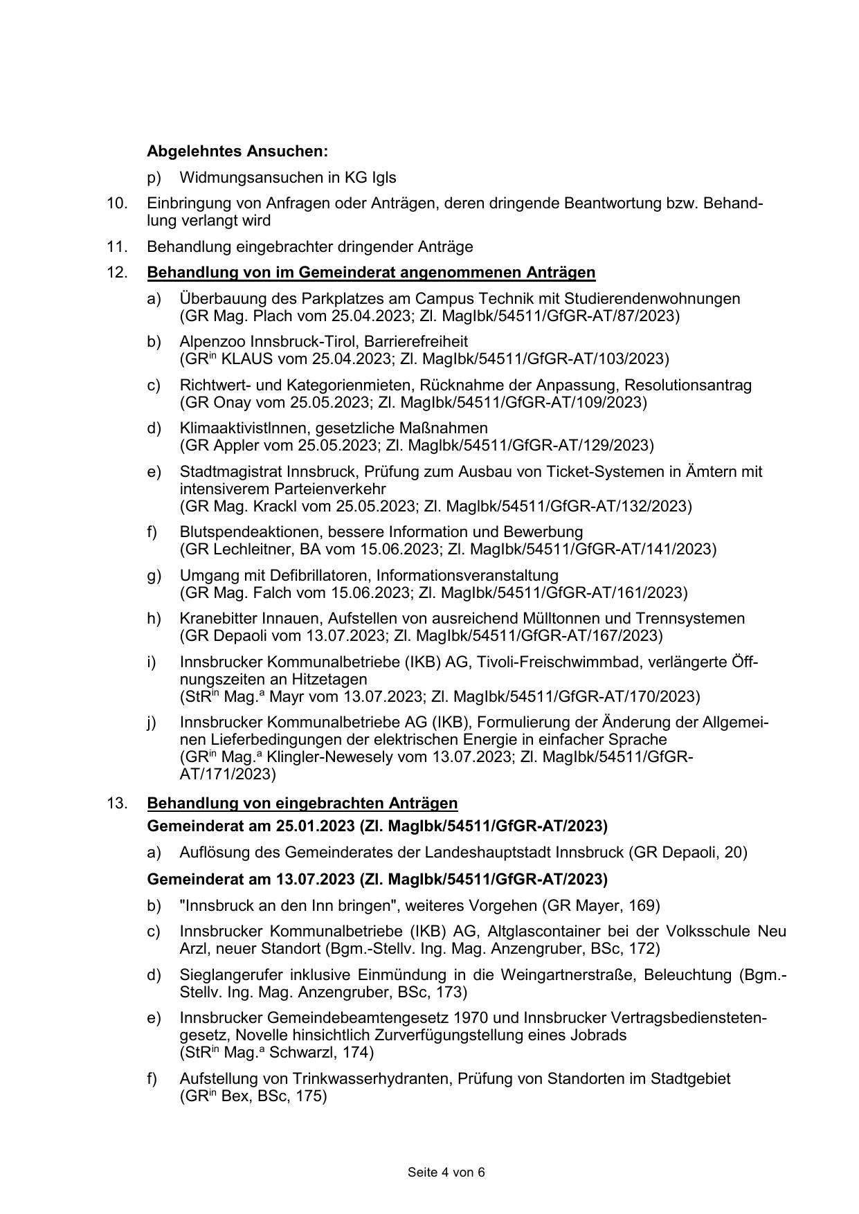 (GR Mag. Plach vom 25.04.2023; Zl. MagIbk/54511/GfGR-AT/87/2023)