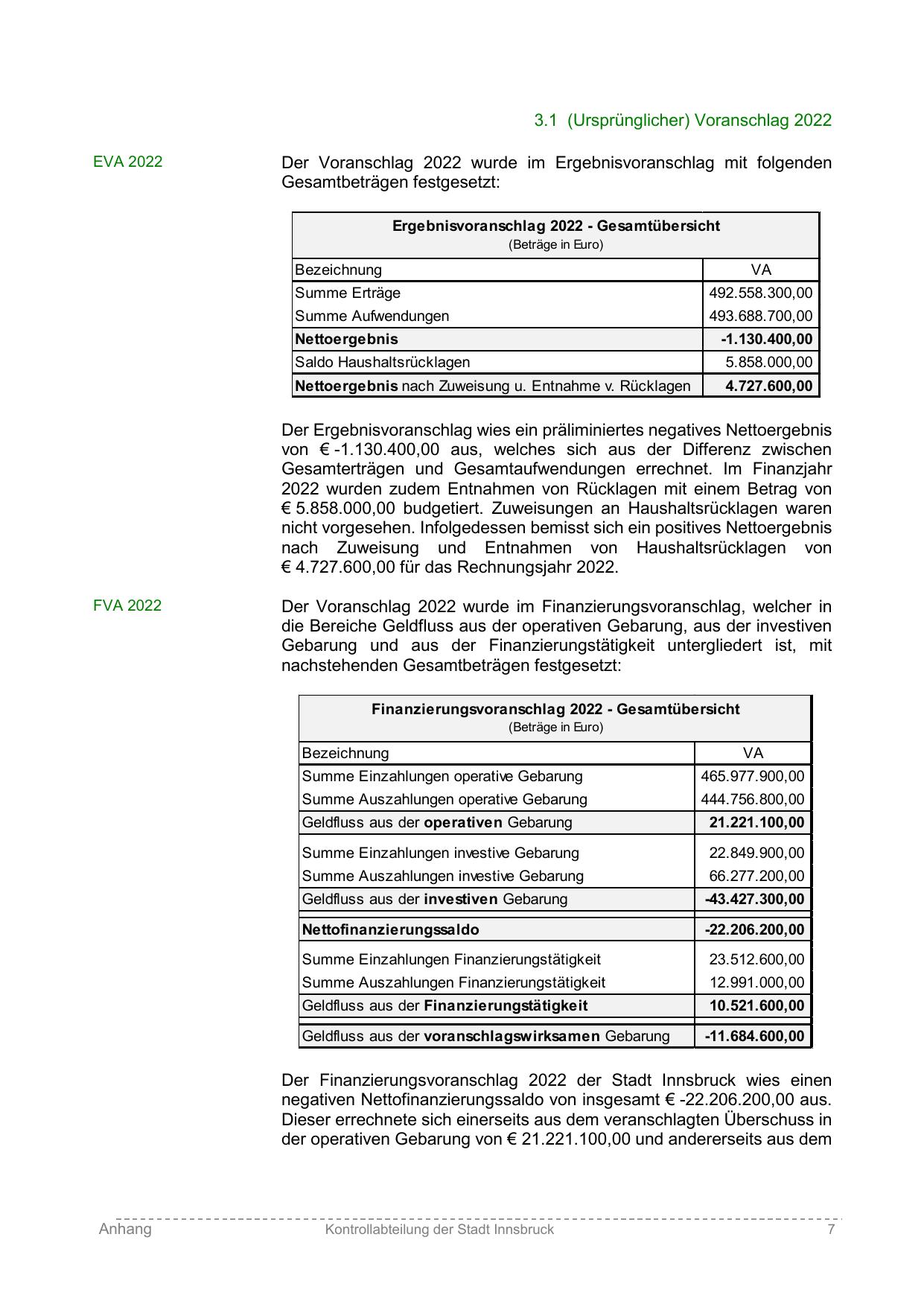 Der Finanzierungsvoranschlag 2022 der Stadt Innsbruck wies einen