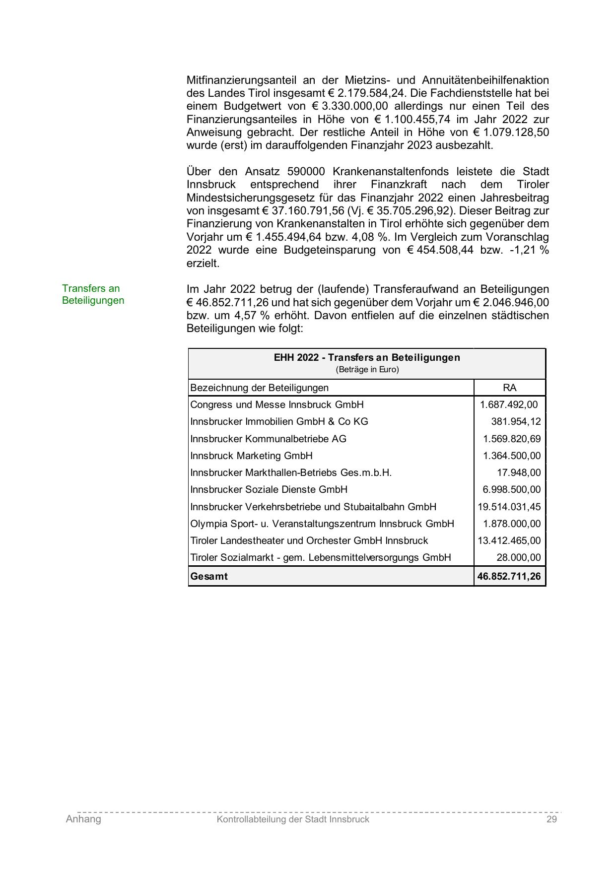 Im Jahr 2022 betrug der (laufende) Transferaufwand an Beteiligungen