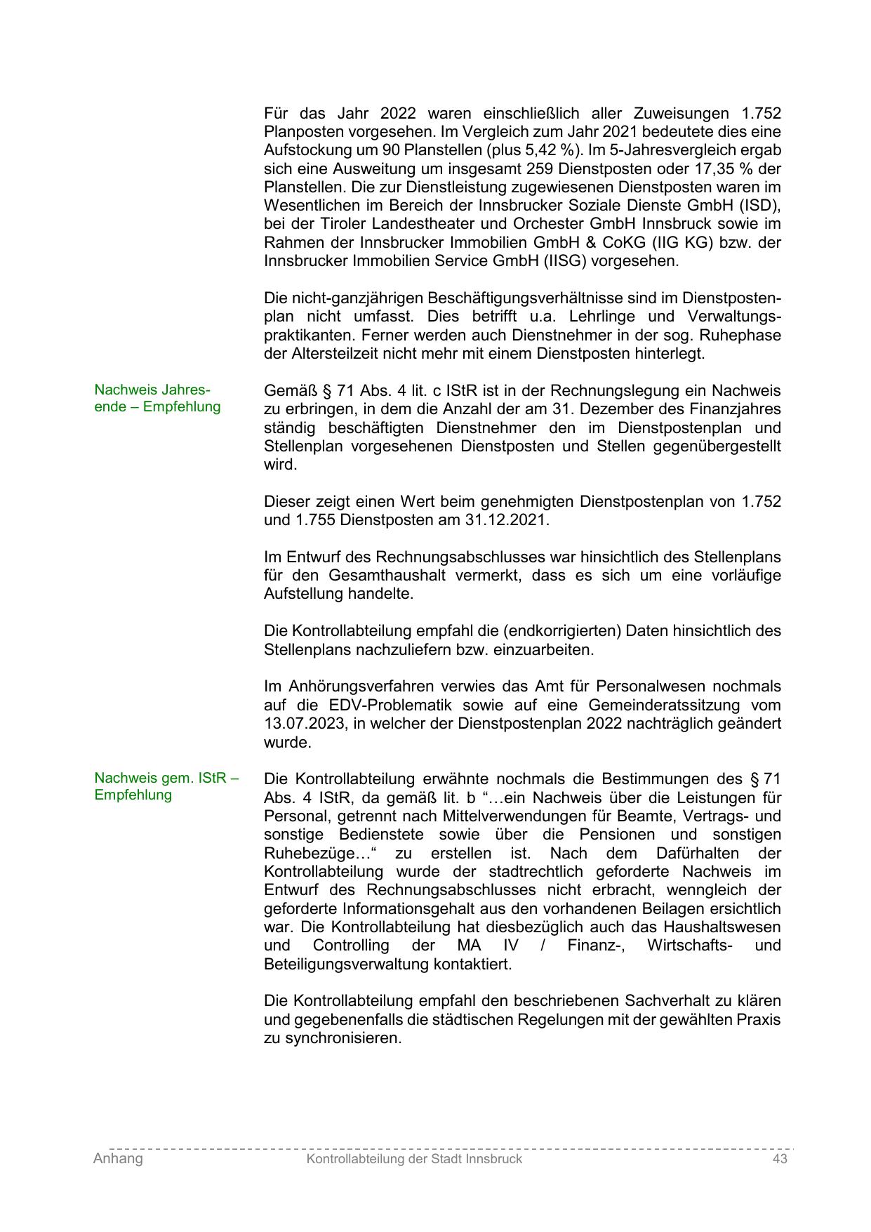Im Entwurf des Rechnungsabschlusses war hinsichtlich des Stellenplans