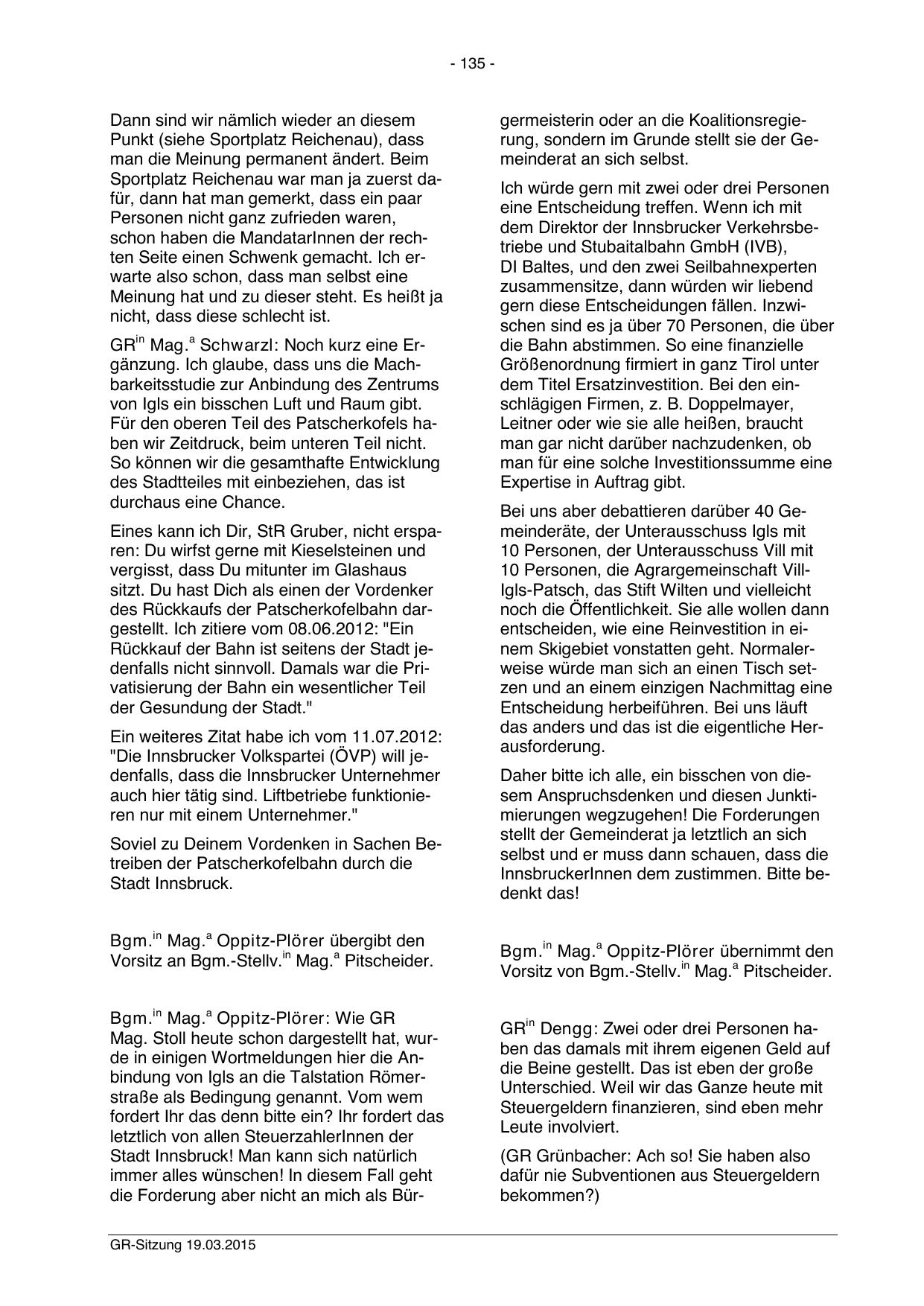 des Rückkaufs der Patscherkofelbahn dargestellt. Ich zitiere vom 08.06.2012: "Ein