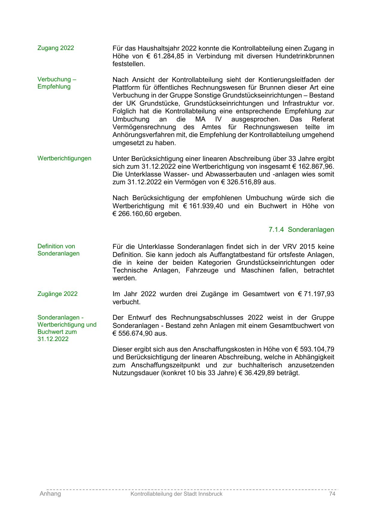 Für die Unterklasse Sonderanlagen findet sich in der VRV 2015 keine