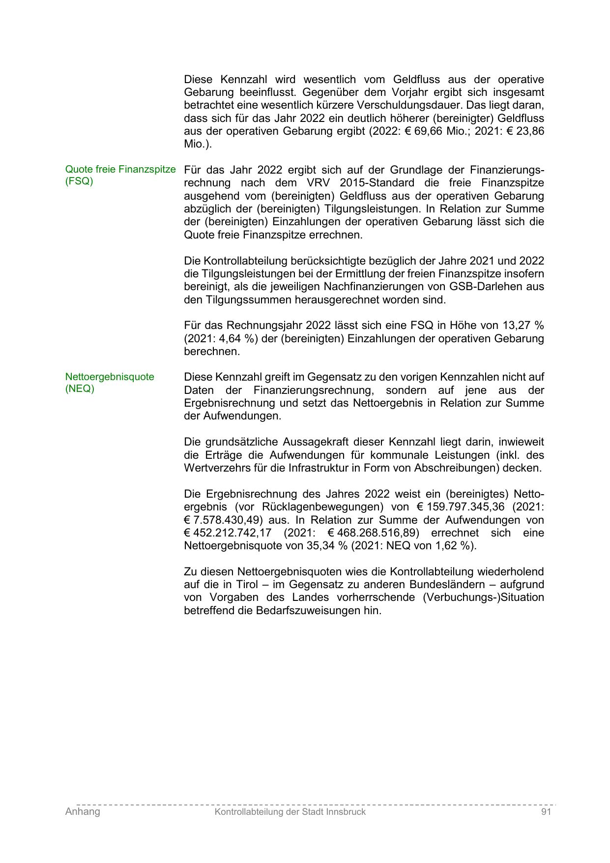 Quote freie Finanzspitze Für das Jahr 2022 ergibt sich auf der Grundlage der Finanzierungs(FSQ)