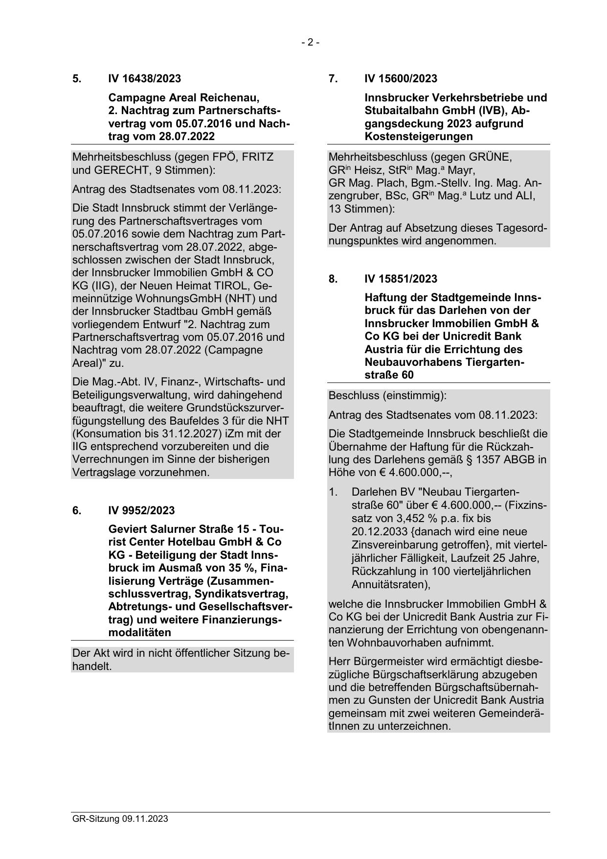 Mehrheitsbeschluss (gegen FPÖ, FRITZ