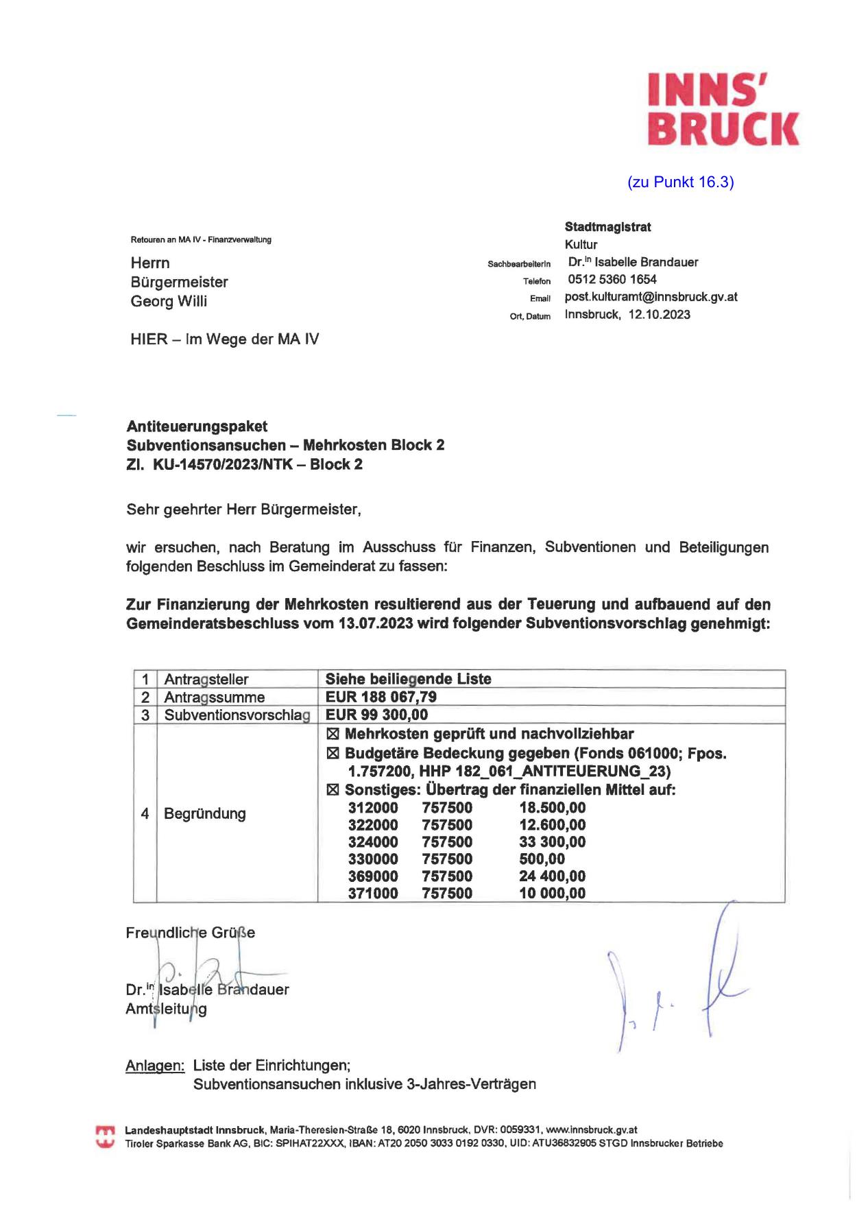 Subventionsansuchen inklusive 3-Jahres-Verträgen