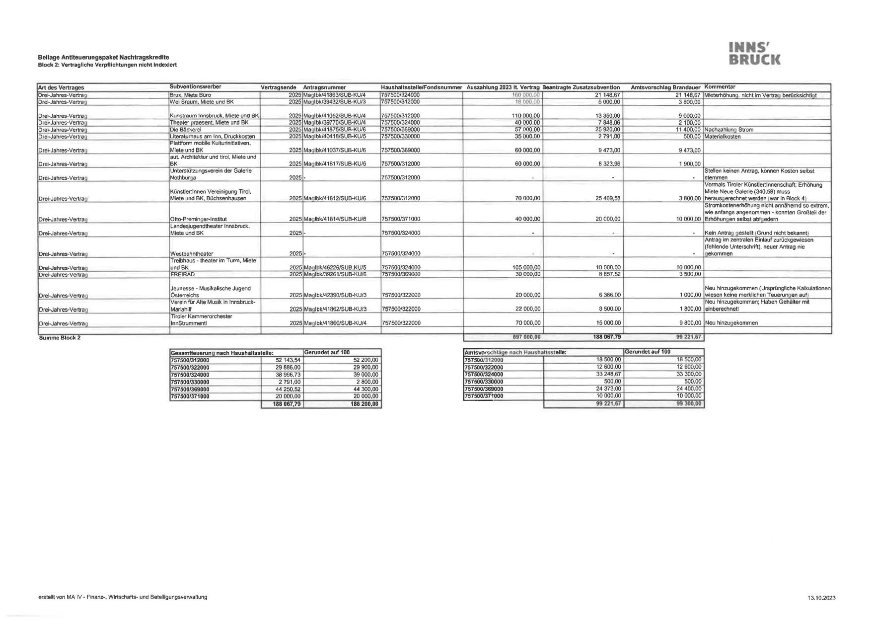 HaushaltsstellelFondsnummer Auszahlung 2023 lt. Vertrag Beantragte Zusatzsubvention
