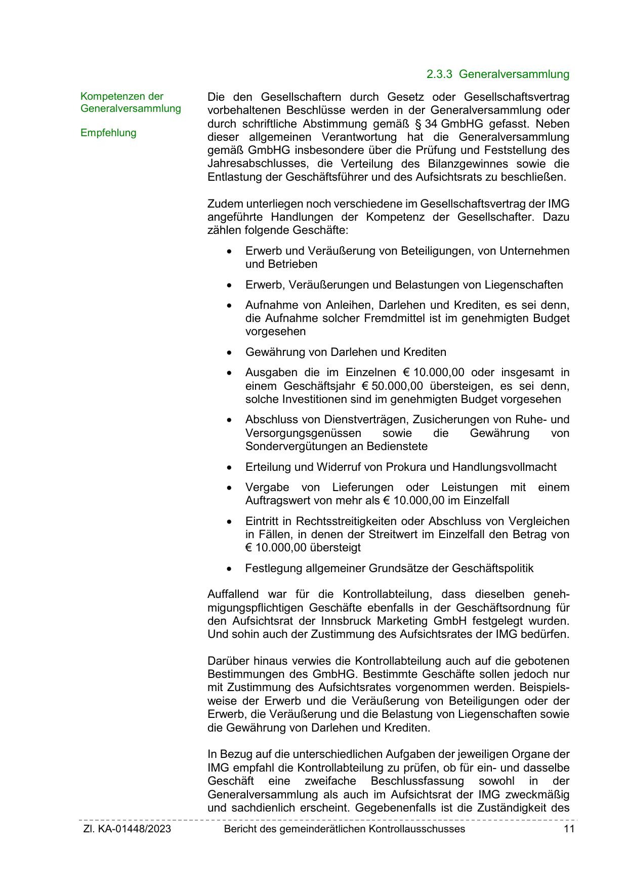 angeführte Handlungen der Kompetenz der Gesellschafter. Dazu