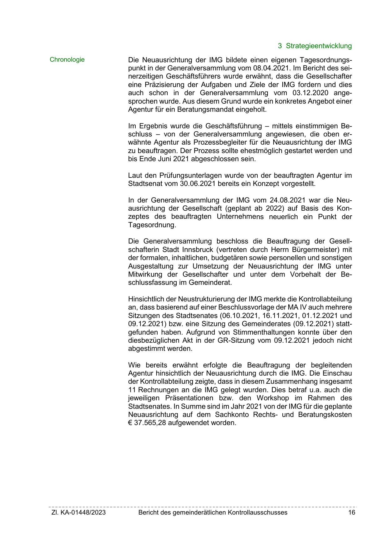 Die Neuausrichtung der IMG bildete einen eigenen Tagesordnungspunkt in der Generalversammlung vom 08.04.2021. Im Bericht des seinerzeitigen Geschäftsführers wurde erwähnt, dass die Gesellschafter