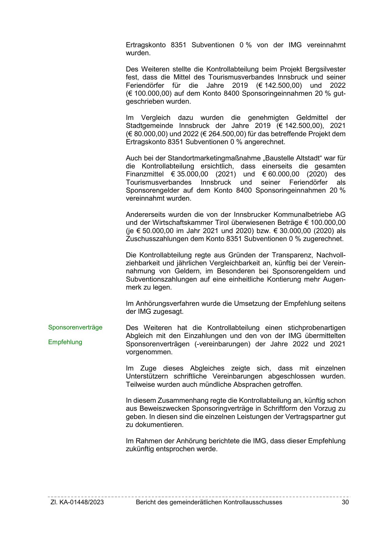 Stadtgemeinde Innsbruck der Jahre 2019 (€ 142.500,00), 2021