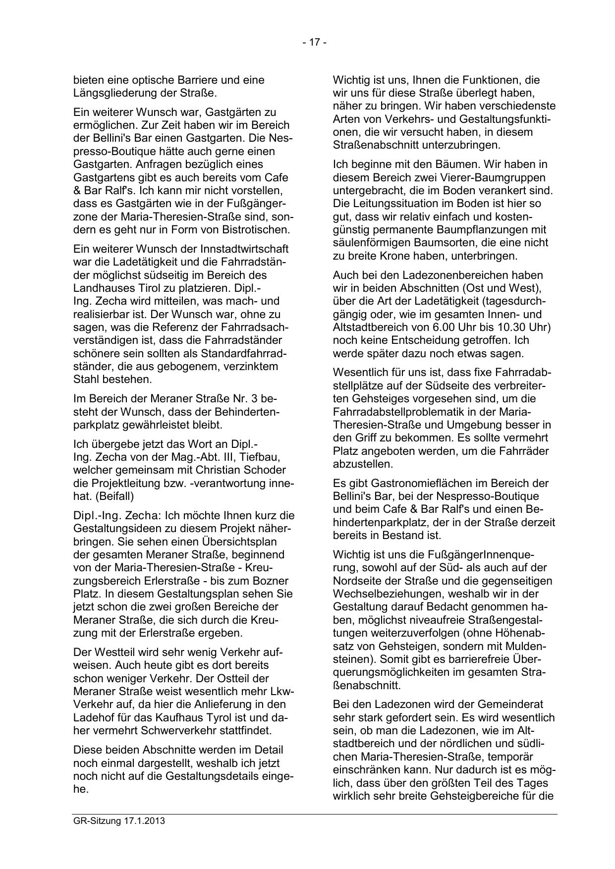 sein, ob man die Ladezonen, wie im Altstadtbereich und der nördlichen und südlichen Maria-Theresien-Straße, temporär
