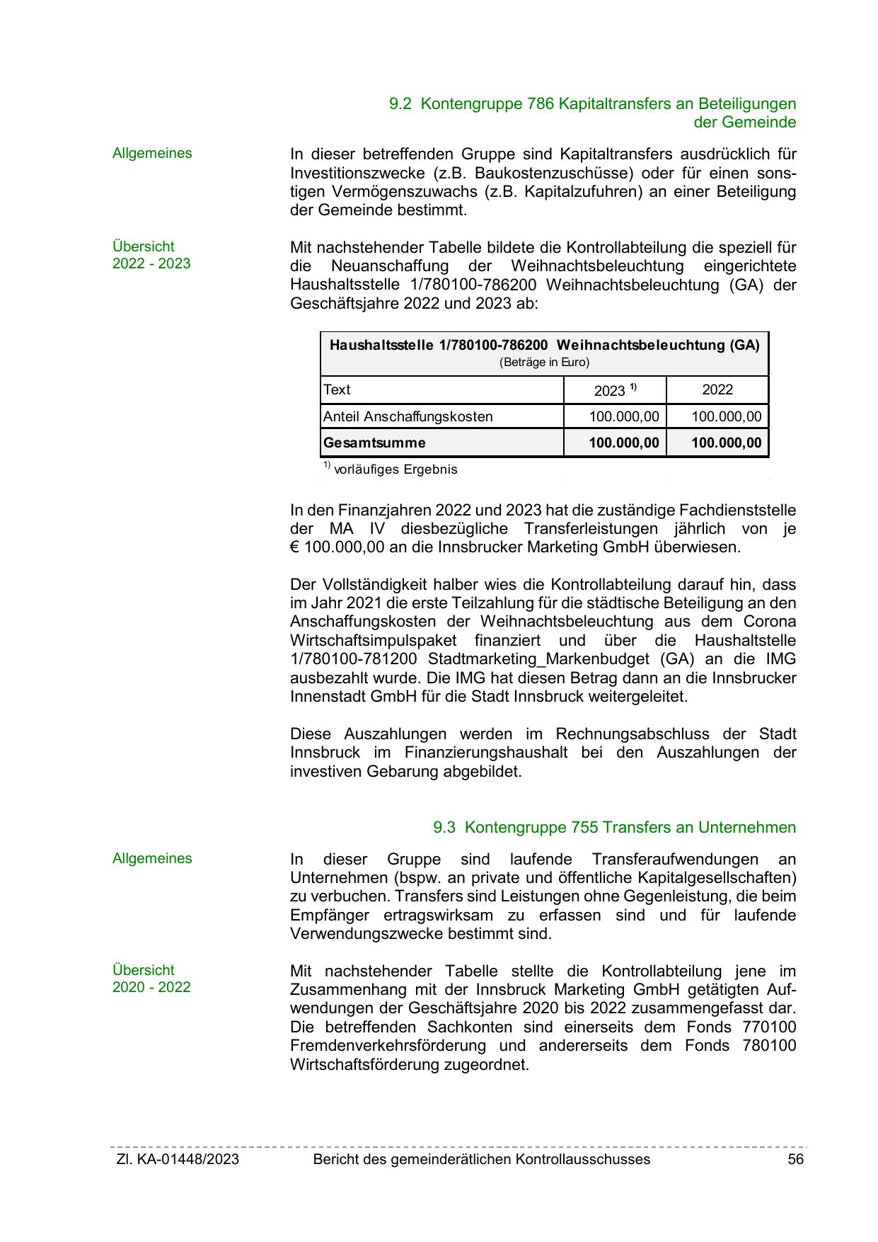 € 100.000,00 an die Innsbrucker Marketing GmbH überwiesen.