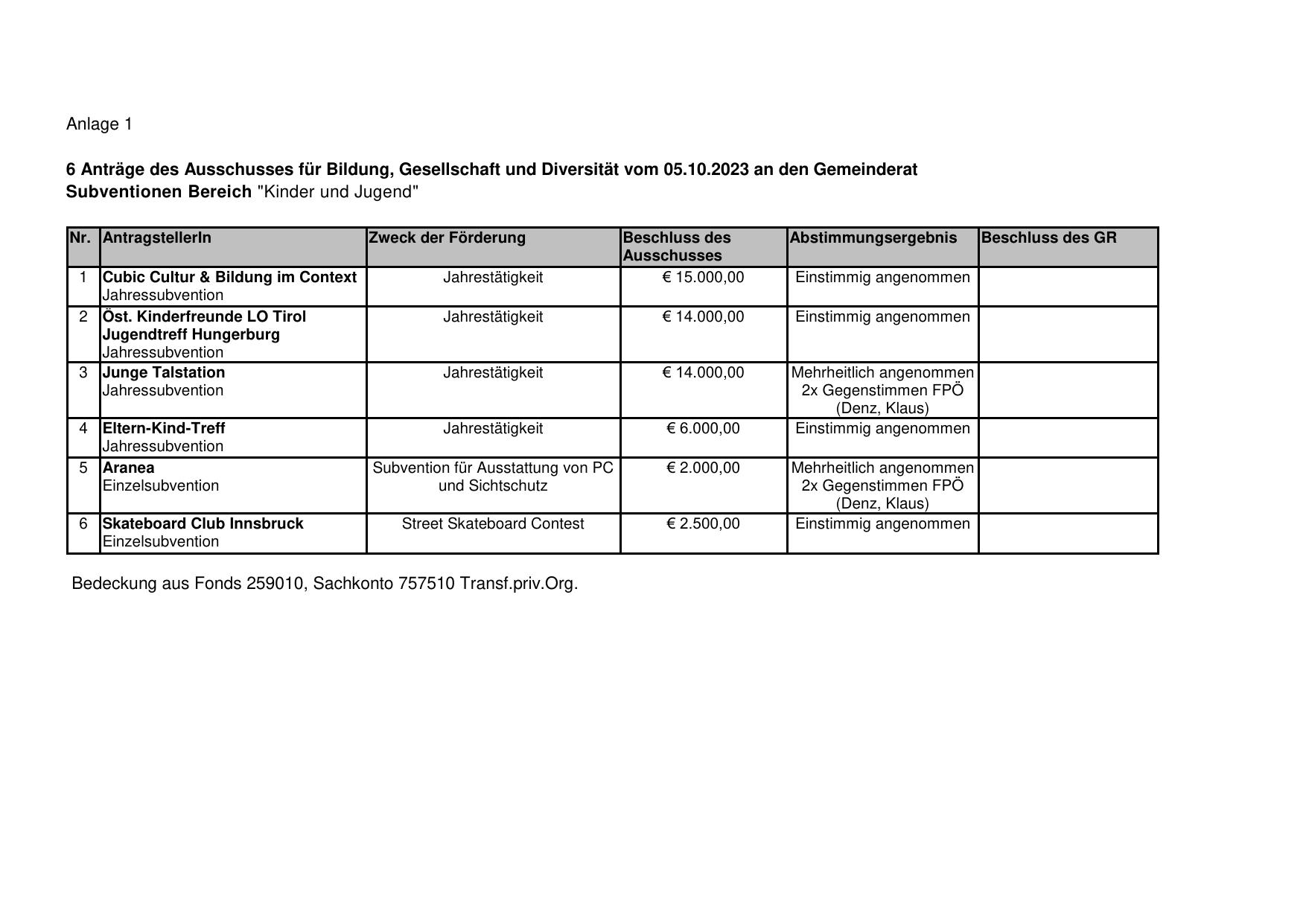 6 Anträge des Ausschusses für Bildung, Gesellschaft und Diversität vom 05.10.2023 an den Gemeinderat