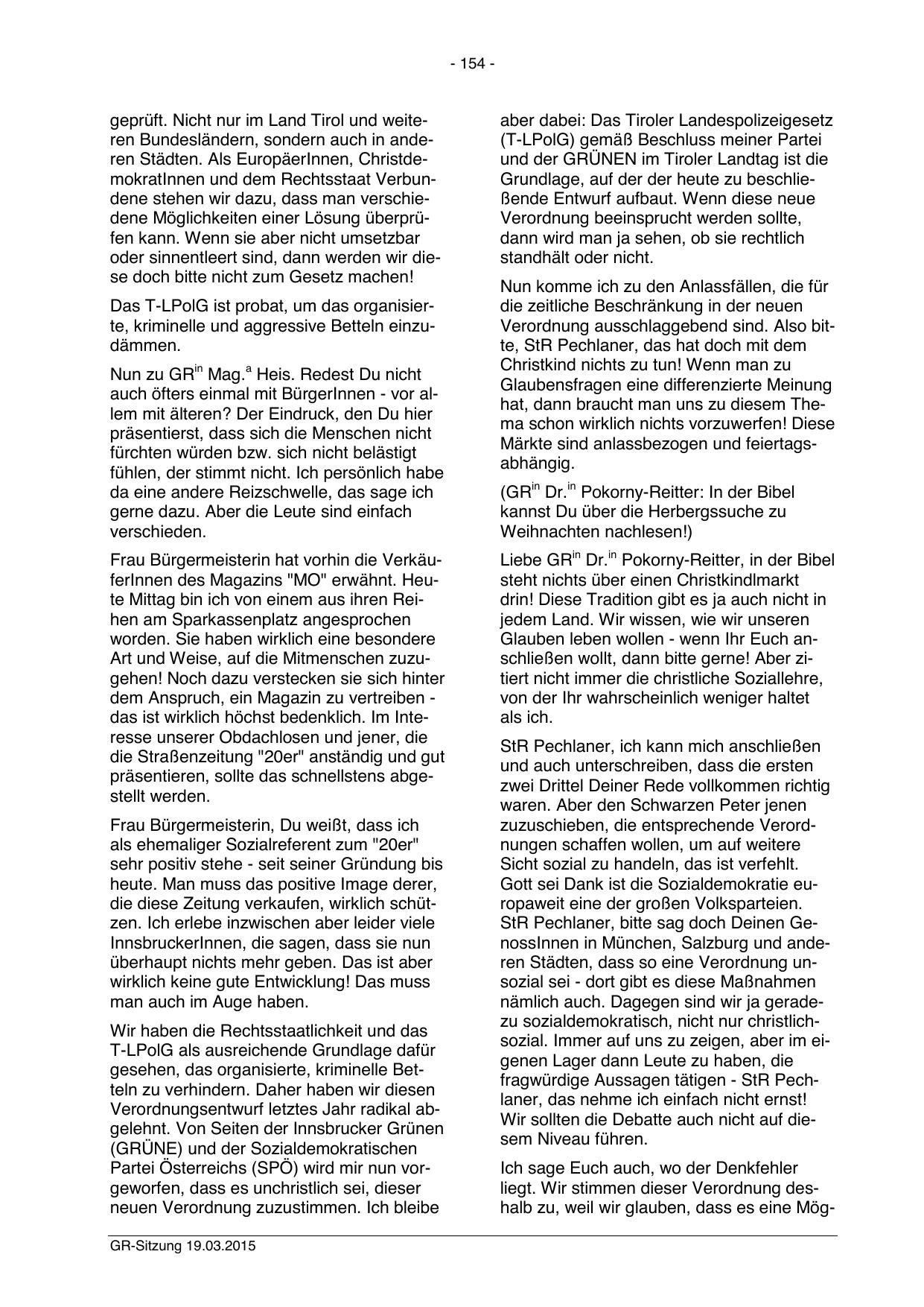 fragwürdige Aussagen tätigen - StR Pechlaner, das nehme ich einfach nicht ernst!