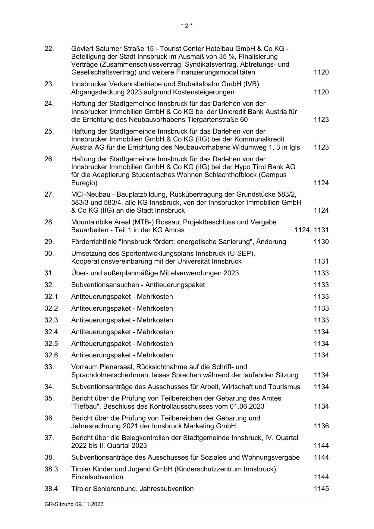 Geviert Salurner Straße 15 - Tourist Center Hotelbau GmbH & Co KG Beteiligung der Stadt Innsbruck im Ausmaß von 35 %, Finalisierung