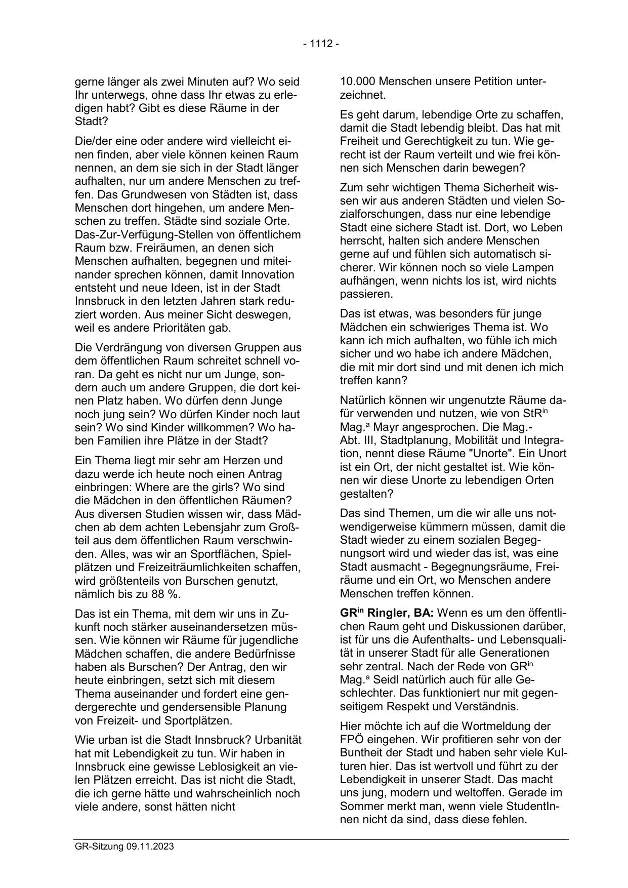 GRin Ringler, BA: Wenn es um den öffentlichen Raum geht und Diskussionen darüber,