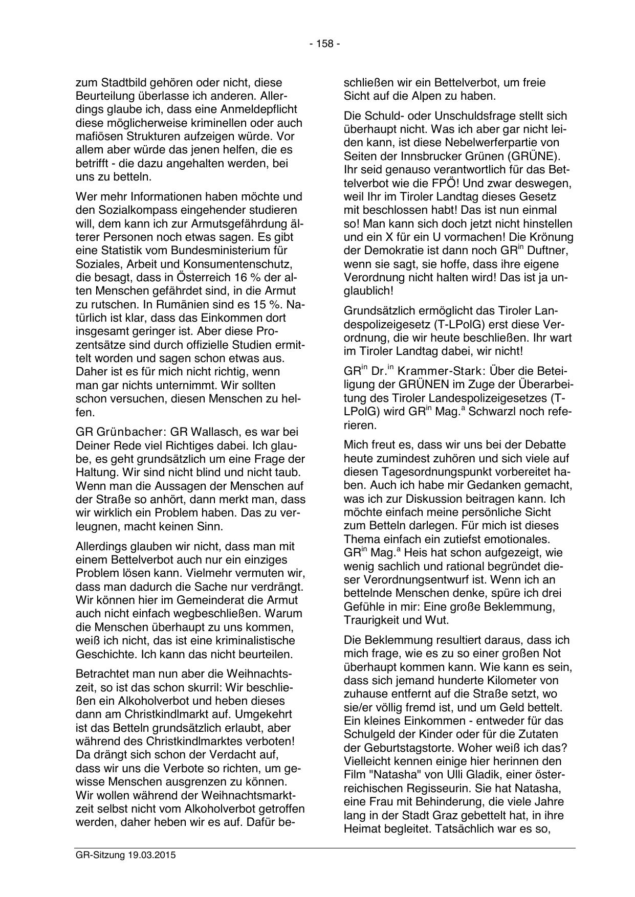 GRin Dr.in Krammer-Stark: Über die Beteiligung der GRÜNEN im Zuge der Überarbeitung des Tiroler Landespolizeigesetzes (TLPolG) wird GRin Mag.a Schwarzl noch referieren.