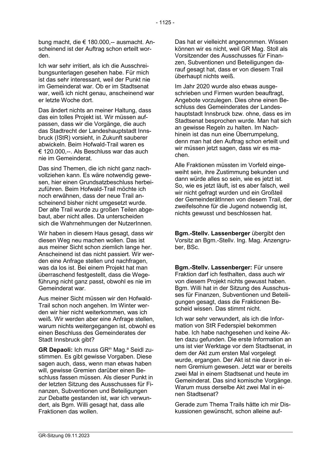 GR Depaoli: Ich muss GRin Mag.a Seidl zustimmen. Es gibt gewisse Vorgaben. Diese