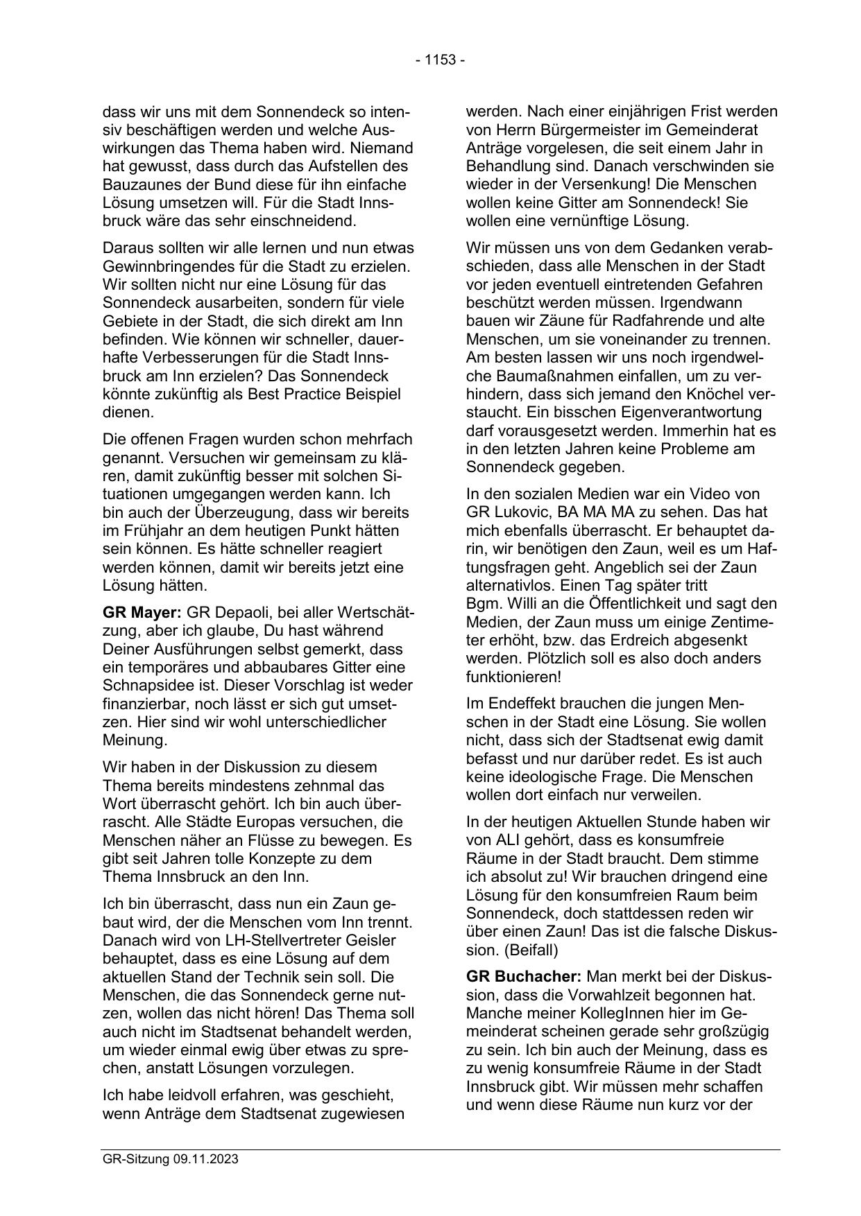 GR Mayer: GR Depaoli, bei aller Wertschätzung, aber ich glaube, Du hast während