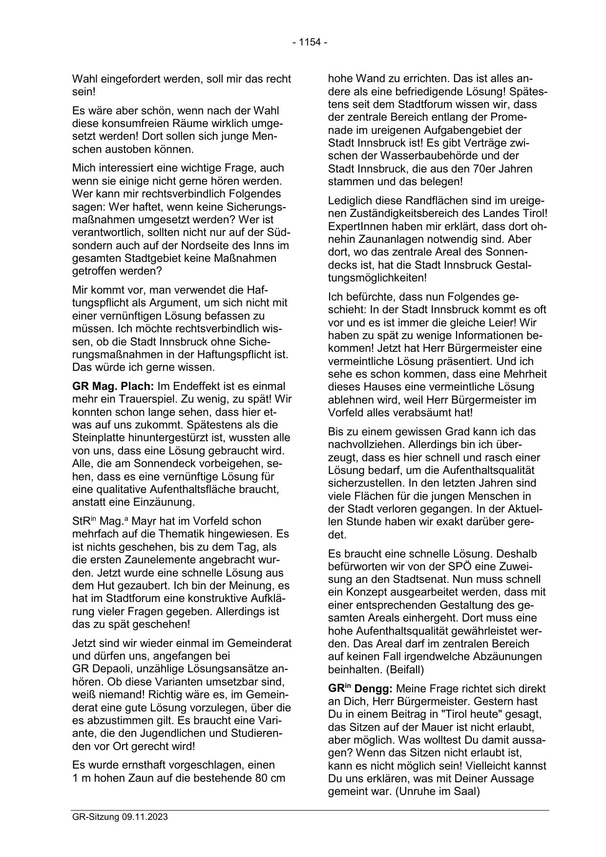 müssen. Ich möchte rechtsverbindlich wissen, ob die Stadt Innsbruck ohne Sicherungsmaßnahmen in der Haftungspflicht ist.