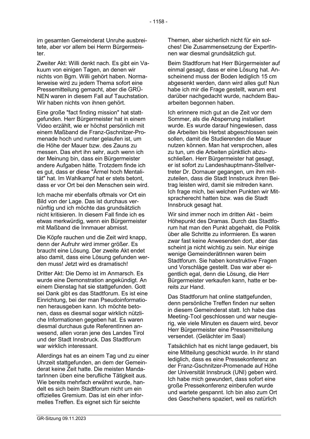 Uhrzeit stattgefunden, an dem der Gemeinderat keine Zeit hatte. Die meisten MandatarInnen üben eine berufliche Tätigkeit aus.