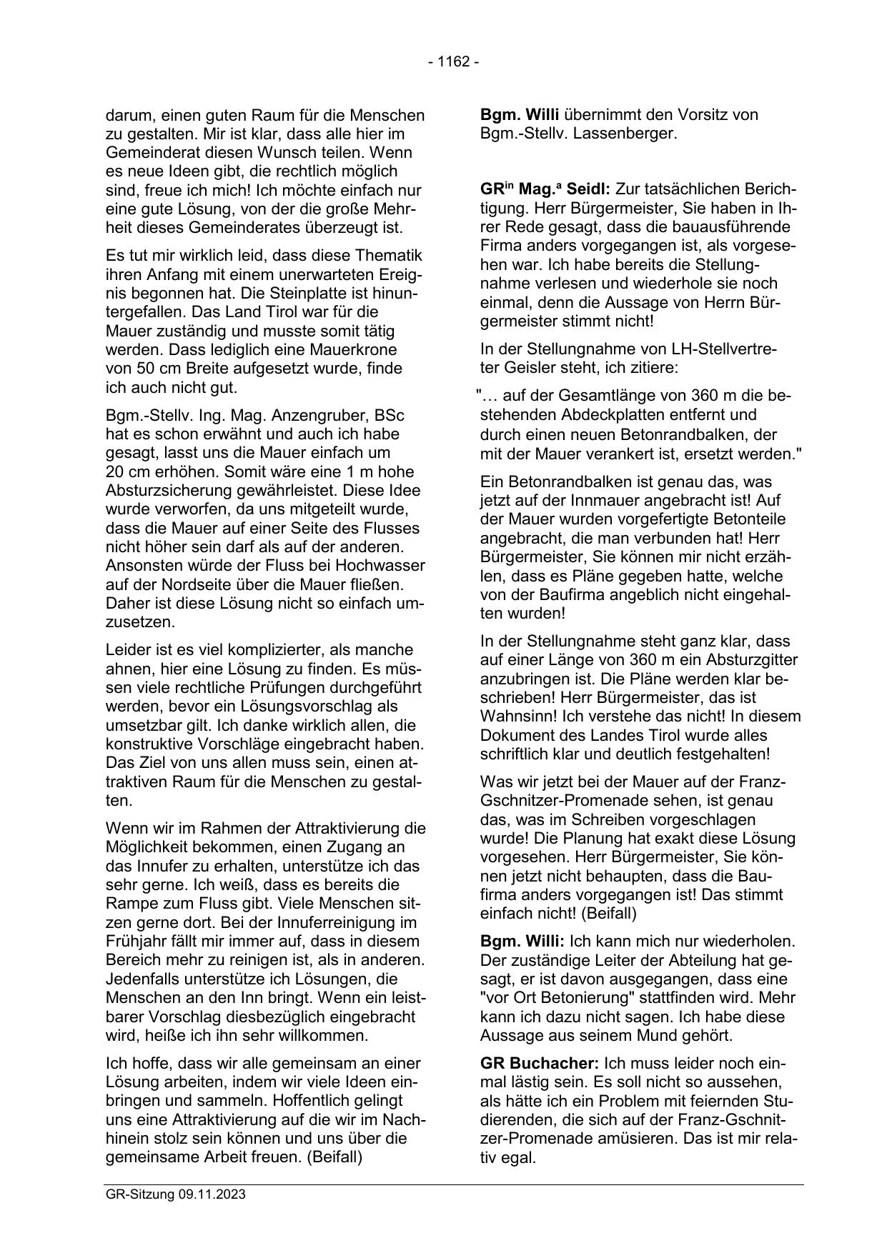 Bgm. Willi: Ich kann mich nur wiederholen.