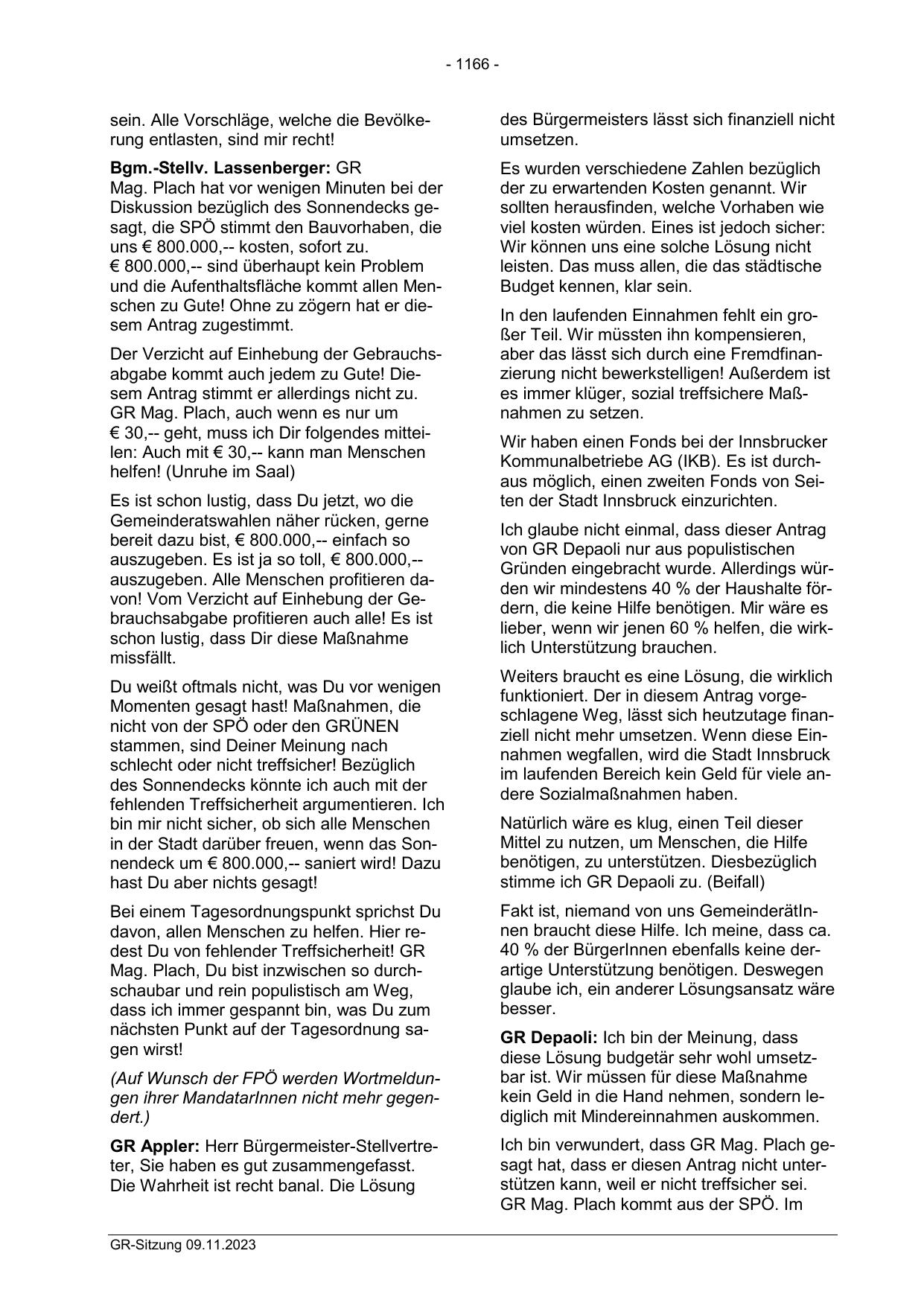 GR Mag. Plach, auch wenn es nur um