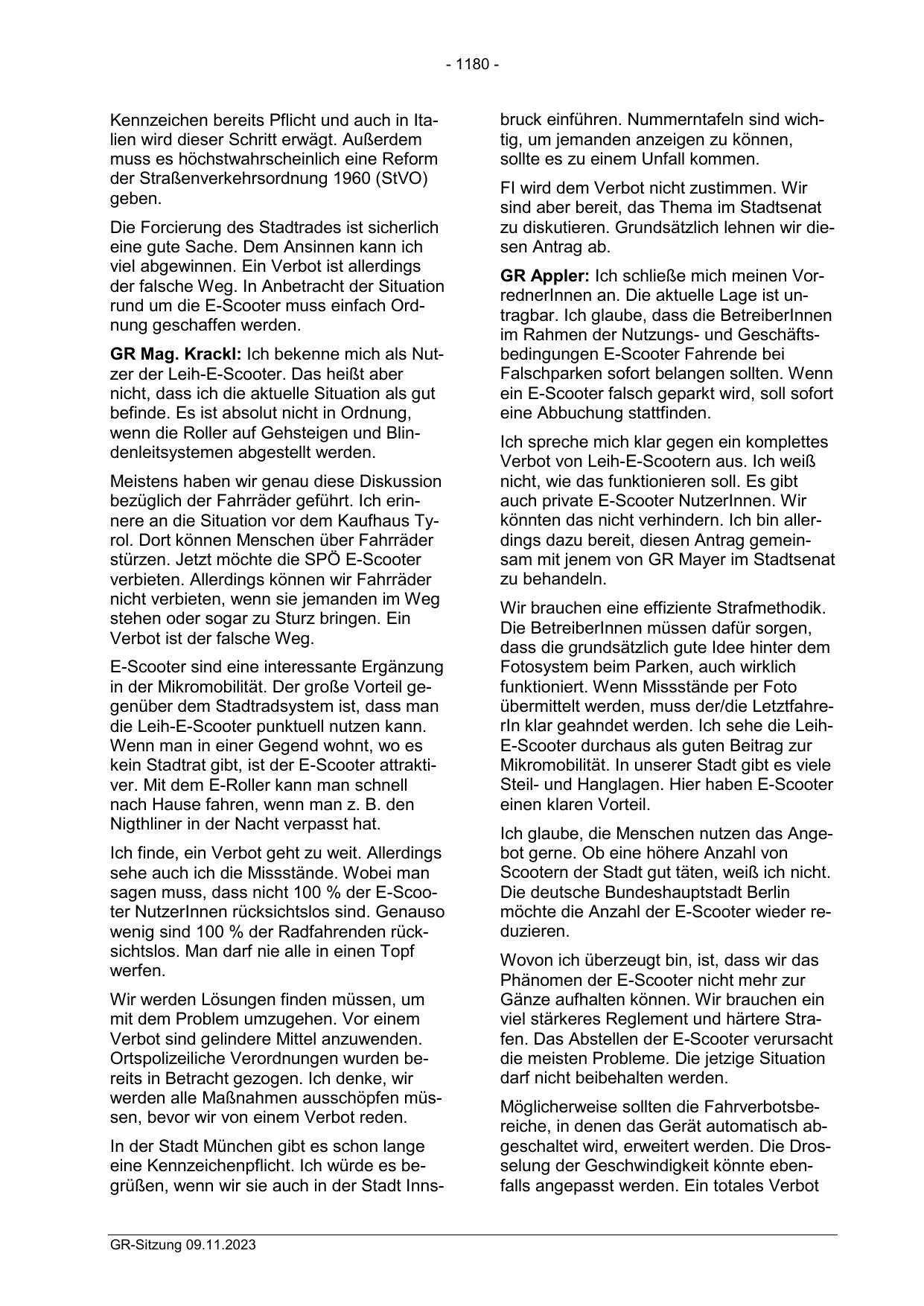 GR Mag. Krackl: Ich bekenne mich als Nutzer der Leih-E-Scooter. Das heißt aber