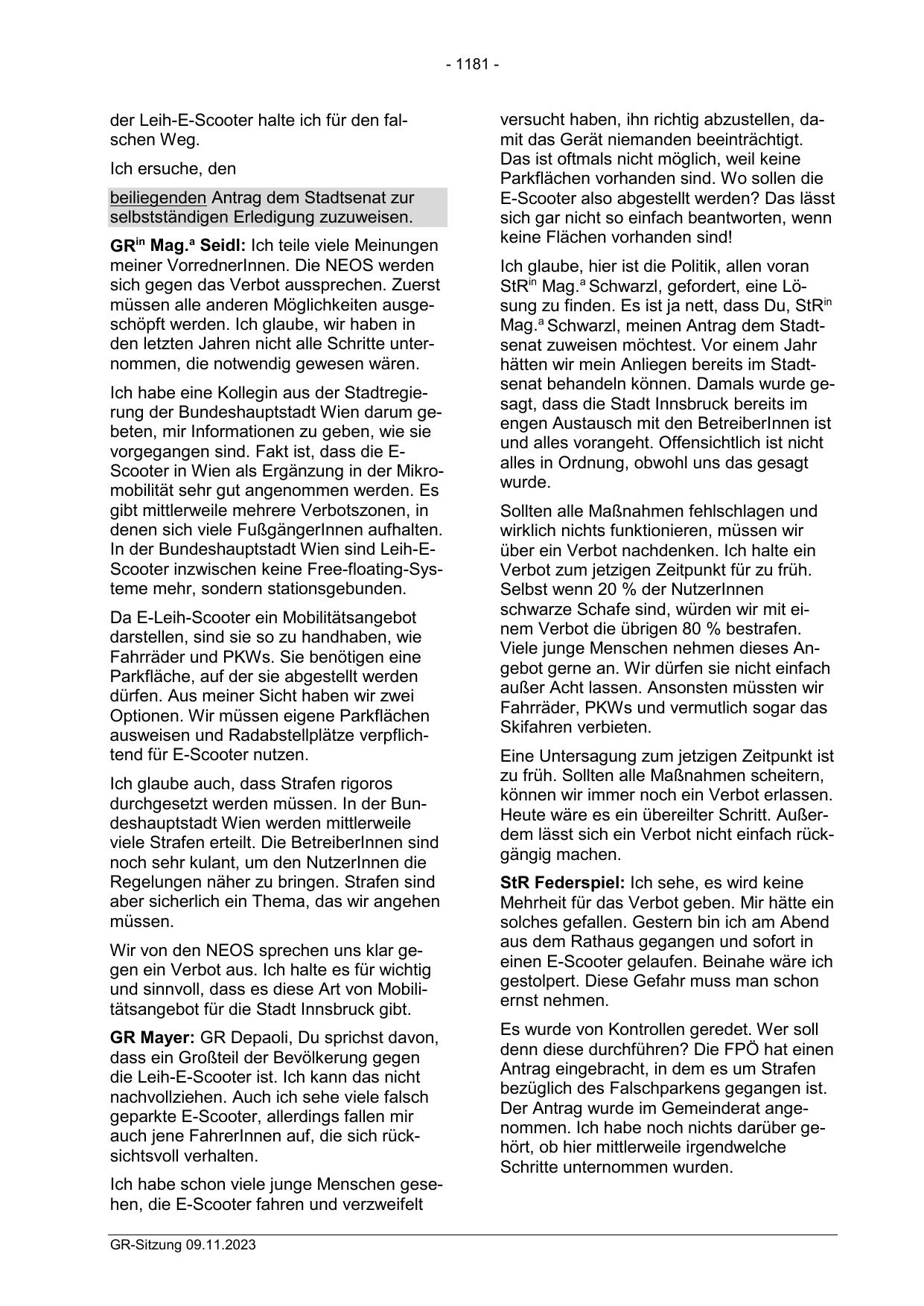 hätten wir mein Anliegen bereits im Stadtsenat behandeln können. Damals wurde gesagt, dass die Stadt Innsbruck bereits im