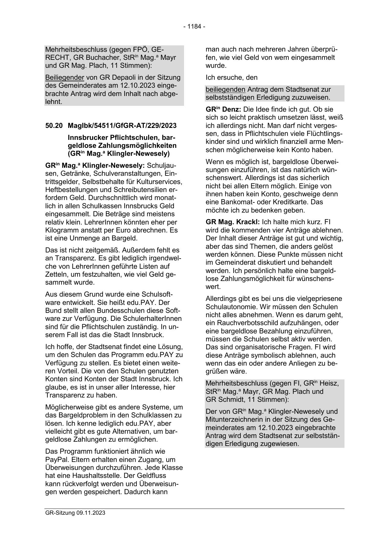 Beiliegender von GR Depaoli in der Sitzung