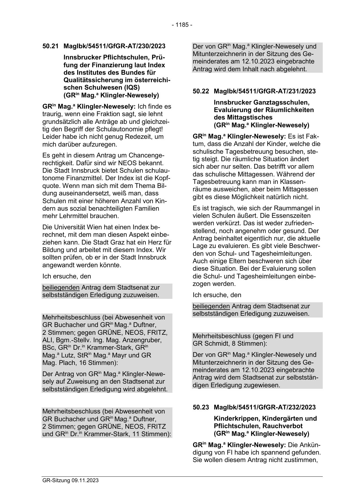Mitunterzeichnerin in der Sitzung des Gemeinderates am 12.10.2023 eingebrachte