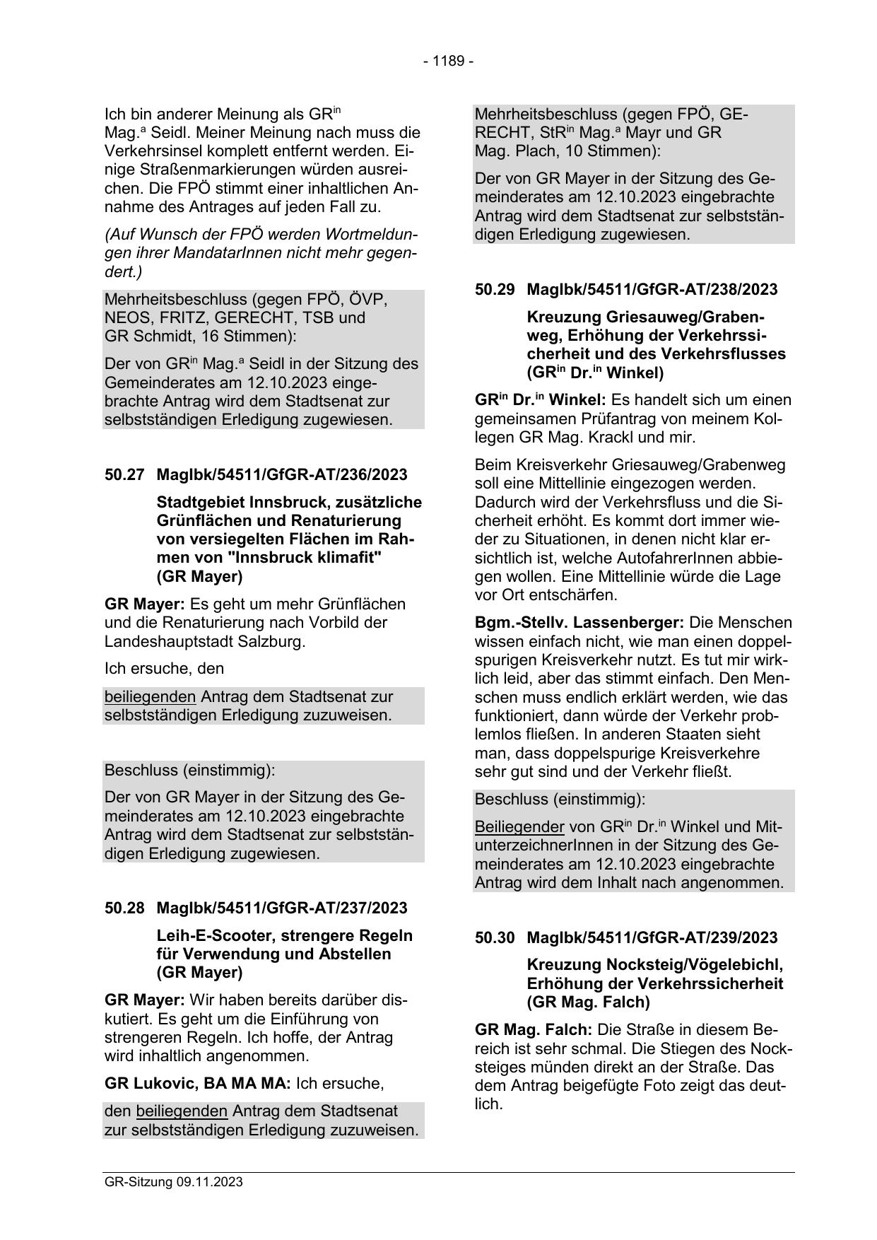 Der von GR Mayer in der Sitzung des Gemeinderates am 12.10.2023 eingebrachte