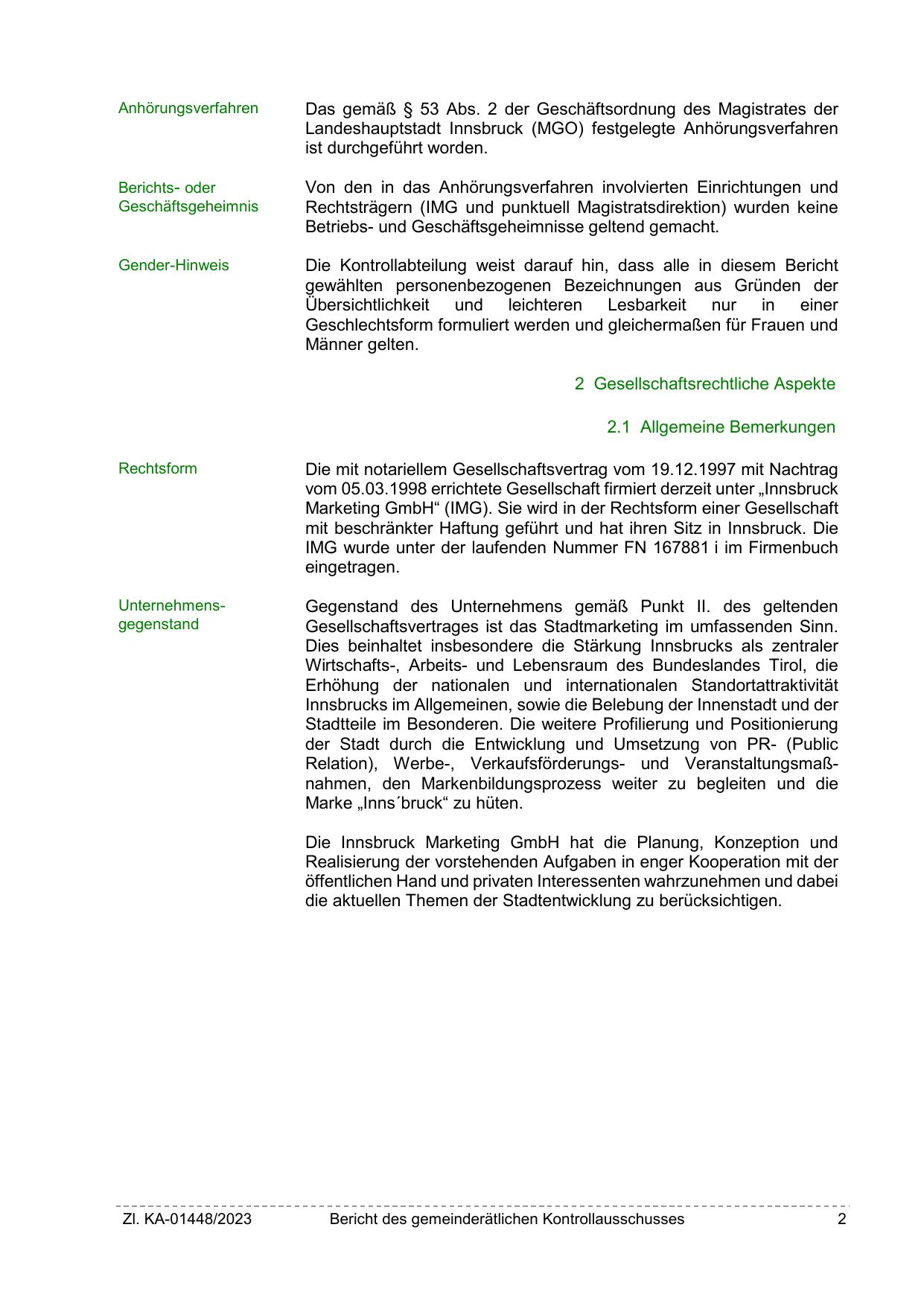Rechtsträgern (IMG und punktuell Magistratsdirektion) wurden keine