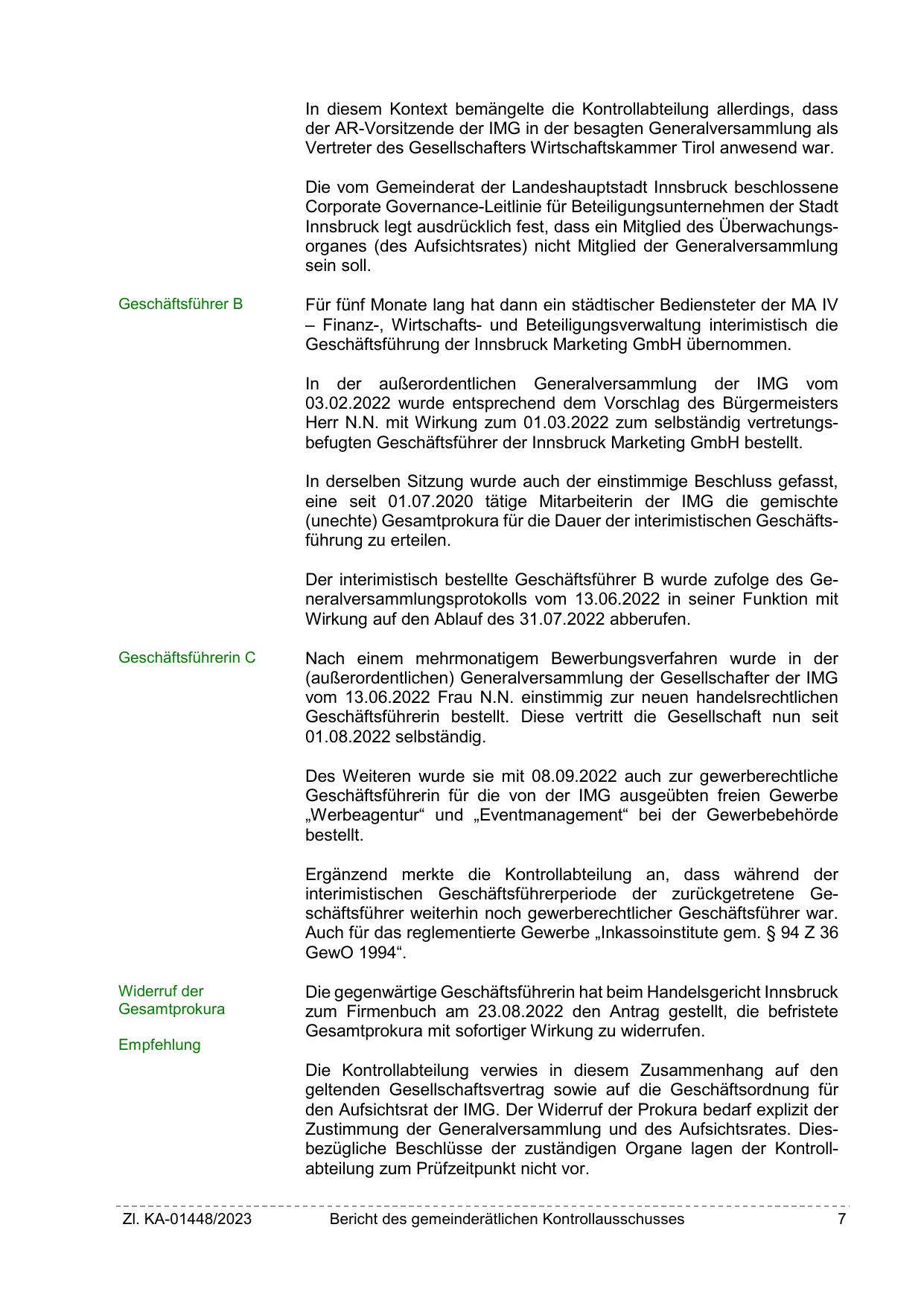 Herr N.N. mit Wirkung zum 01.03.2022 zum selbständig vertretungsbefugten Geschäftsführer der Innsbruck Marketing GmbH bestellt.