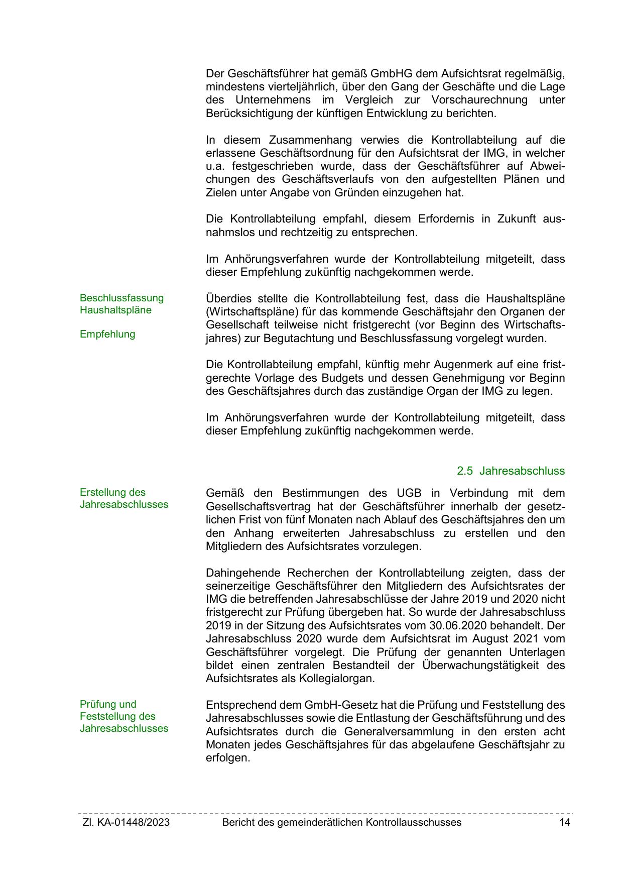 IMG die betreffenden Jahresabschlüsse der Jahre 2019 und 2020 nicht