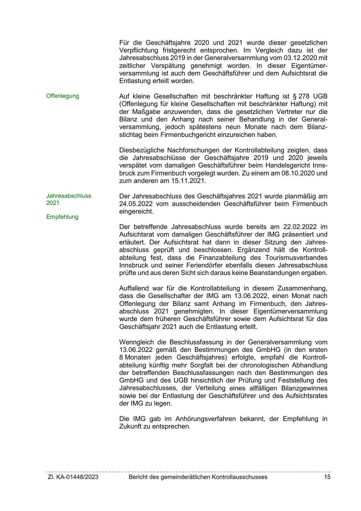 verspätet vom damaligen Geschäftsführer beim Handelsgericht Innsbruck zum Firmenbuch vorgelegt wurden. Zu einem am 08.10.2020 und