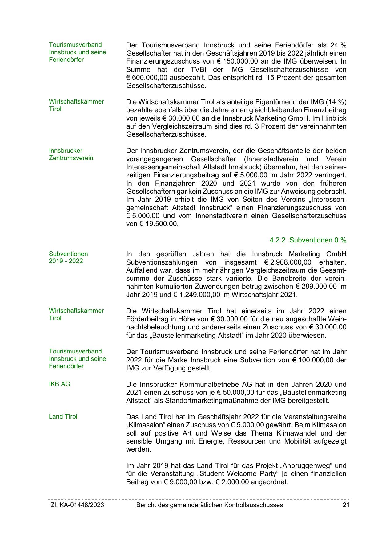2022 für die Marke Innsbruck eine Subvention von € 100.000,00 der