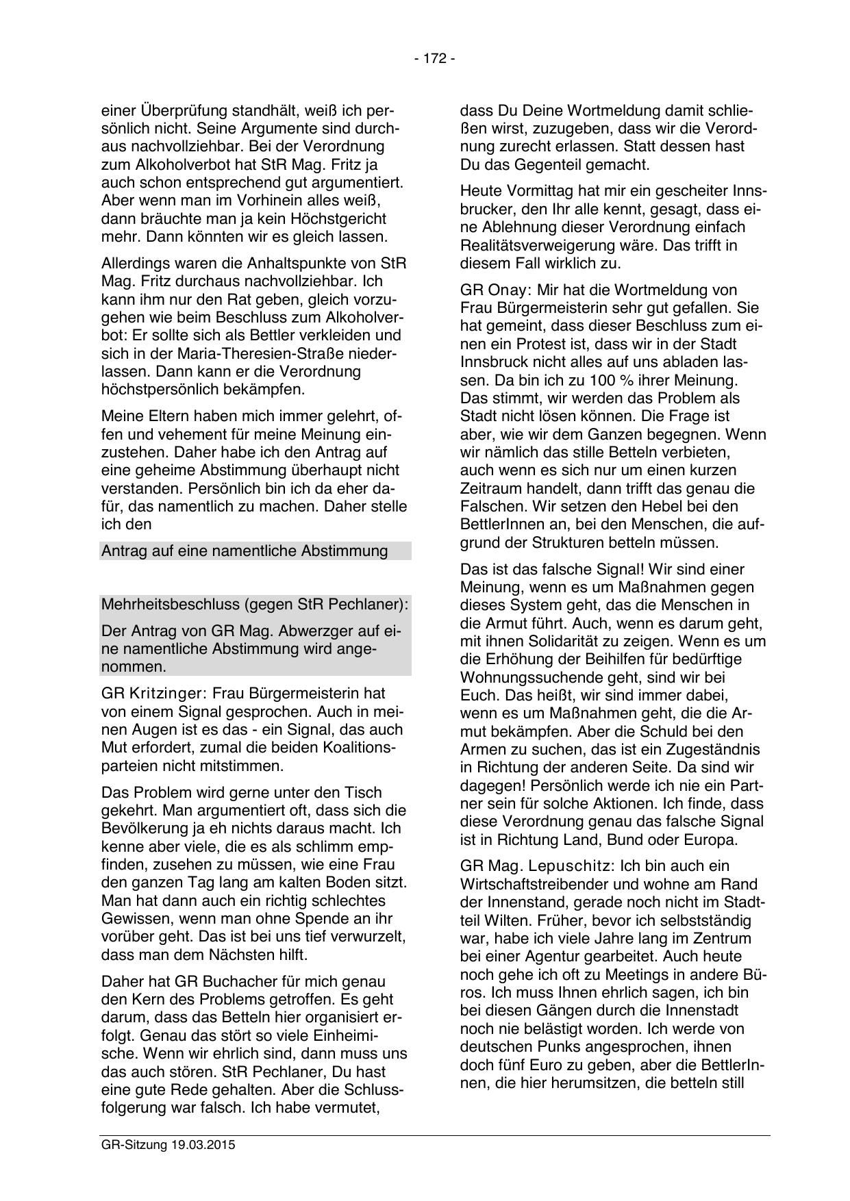 Mehrheitsbeschluss (gegen StR Pechlaner):