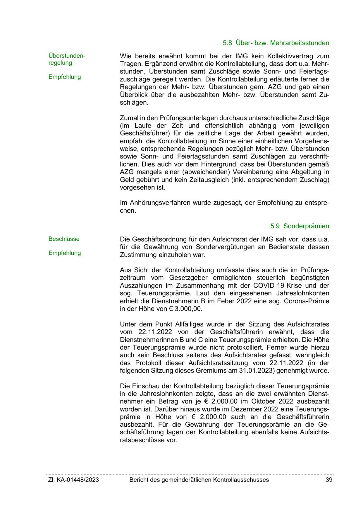 ausbezahlt. Für die Gewährung der Teuerungsprämie an die Geschäftsführung lagen der Kontrollabteilung ebenfalls keine Aufsichtsratsbeschlüsse vor.