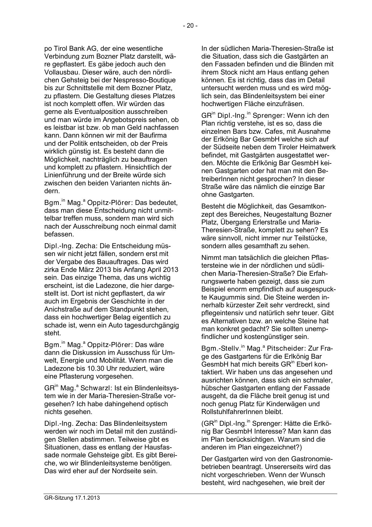 Nimmt man tatsächlich die gleichen Pflastersteine wie in der nördlichen und südlichen Maria-Theresien-Straße? Die Erfahrungswerte haben gezeigt, dass sie zum
