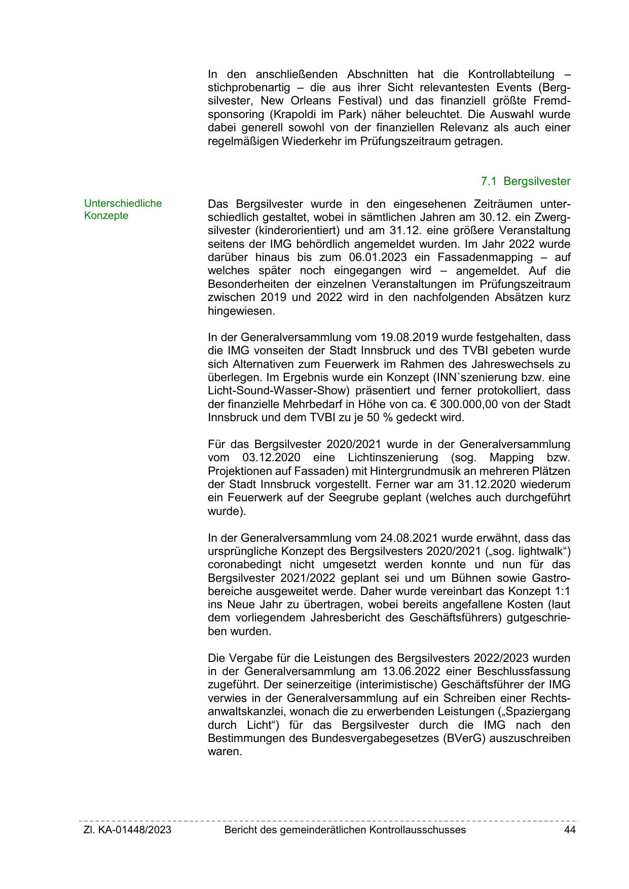 stichprobenartig – die aus ihrer Sicht relevantesten Events (Bergsilvester, New Orleans Festival) und das finanziell größte Fremdsponsoring (Krapoldi im Park) näher beleuchtet. Die Auswahl wurde
