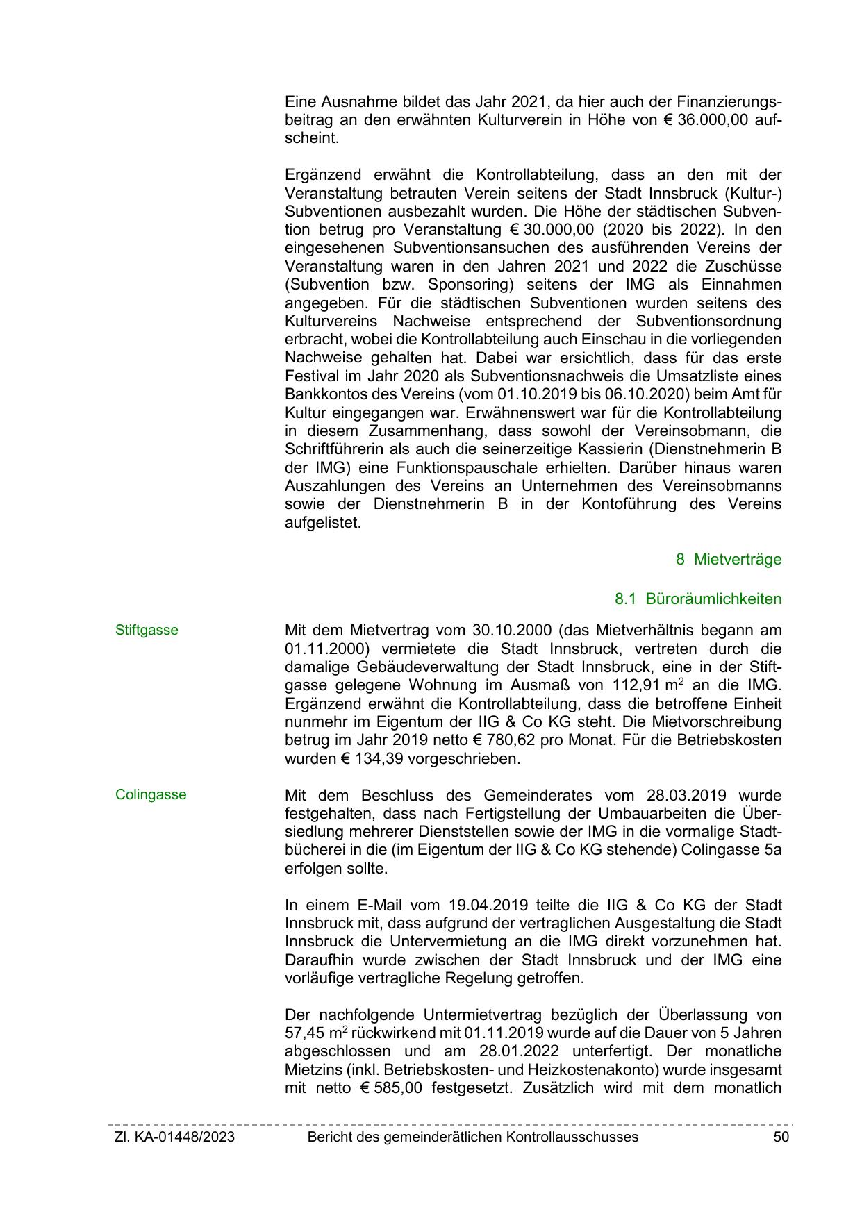 Veranstaltung betrauten Verein seitens der Stadt Innsbruck (Kultur-)